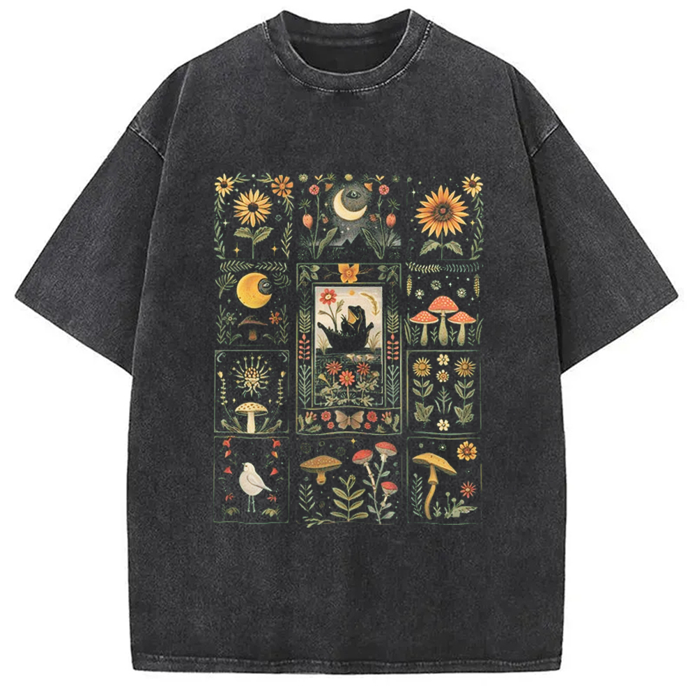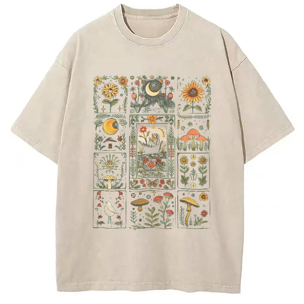 Frog Cottagecore Floral Whimsical Mushroom Back Washed T-S