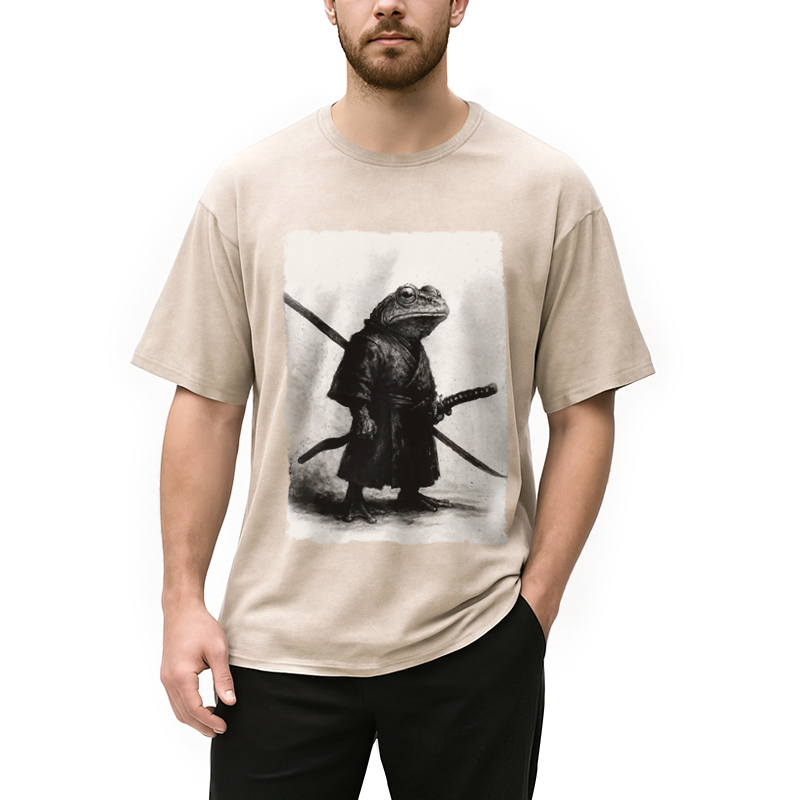 Frog Samurai Japanese Art Vintage Gradient Washed T-Shirt