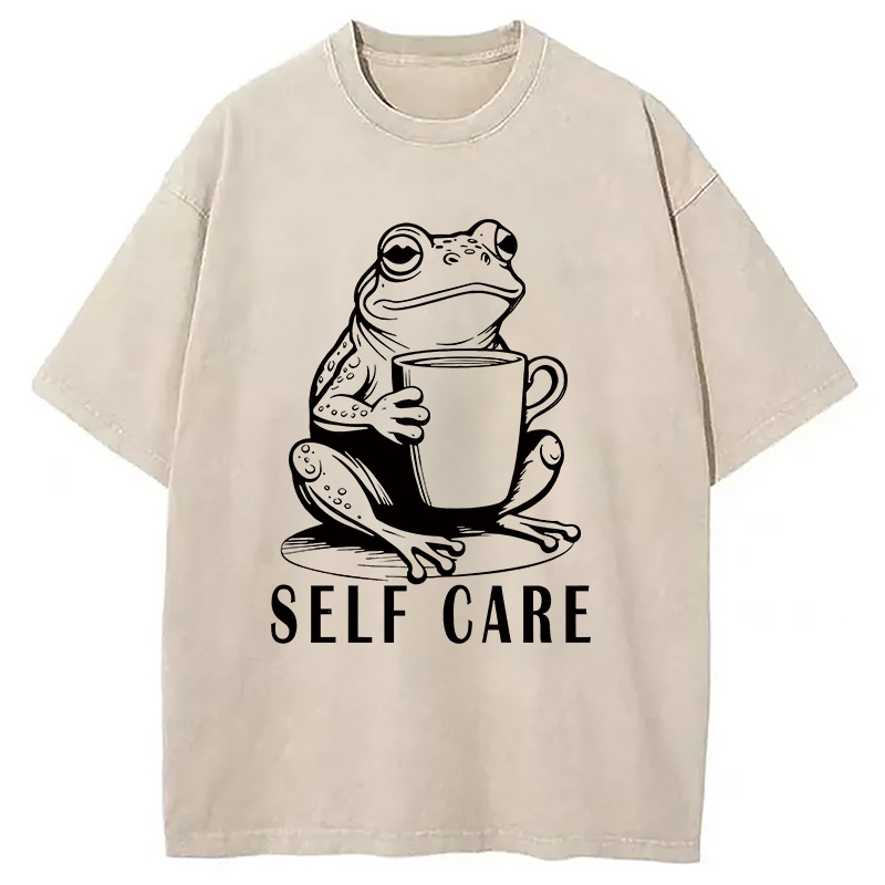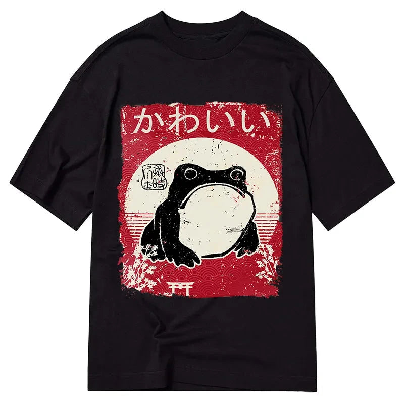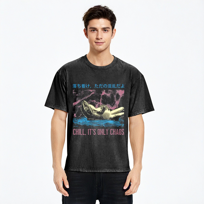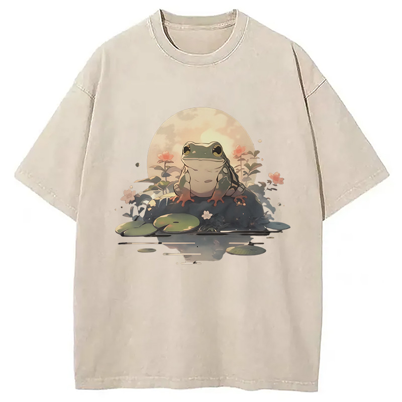 Stay Calm Frog Japanese Washed T-Shirt For Sale