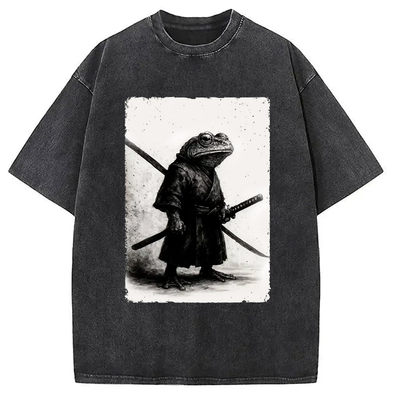 Japanese Ukiyo-e Samurai Ninja Frogs Washed T-Shirt