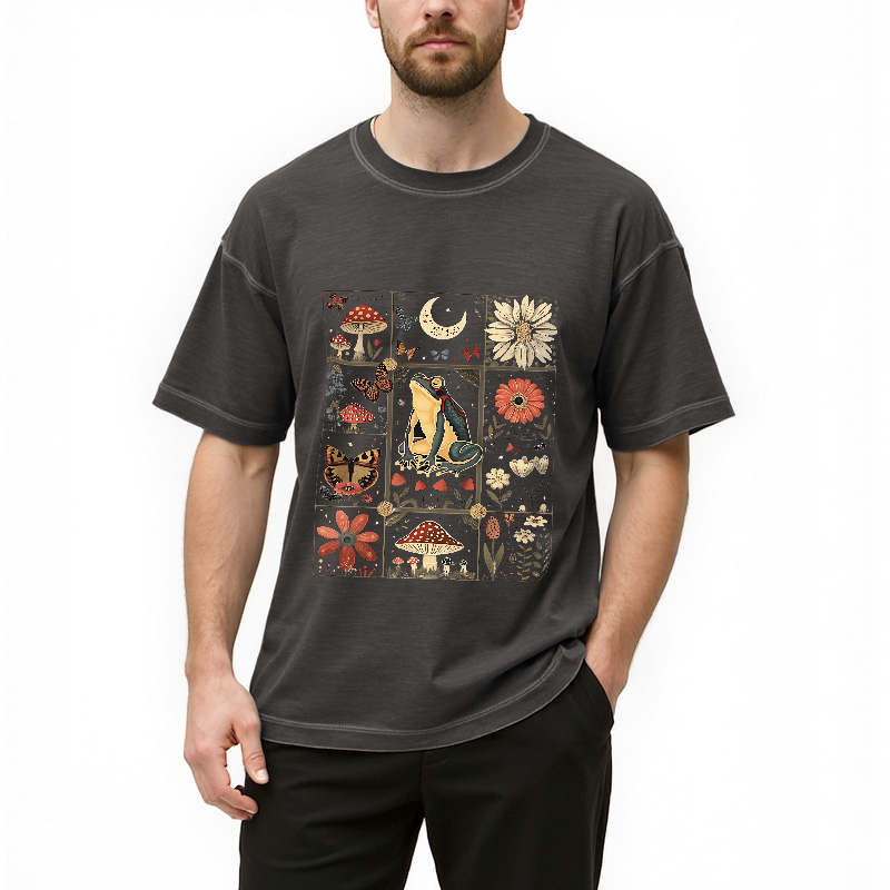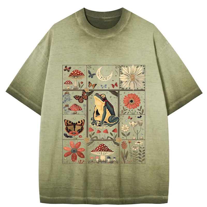 Celestial Frog Goblincore Mushroom Gradient Washed T-Shirt