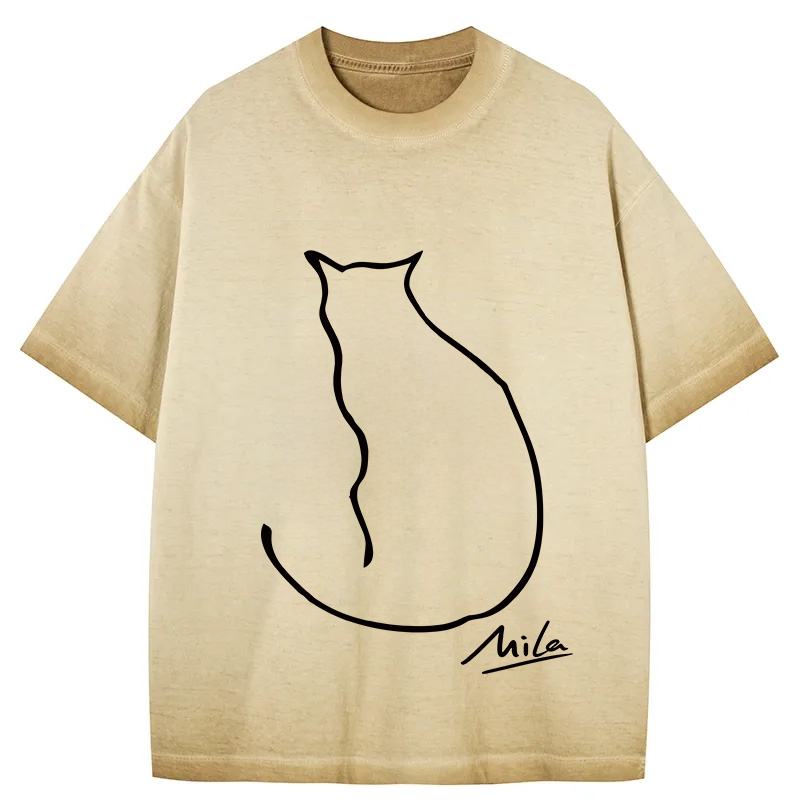 Funny Melancholy Cat Gradient Washed T-Shirt