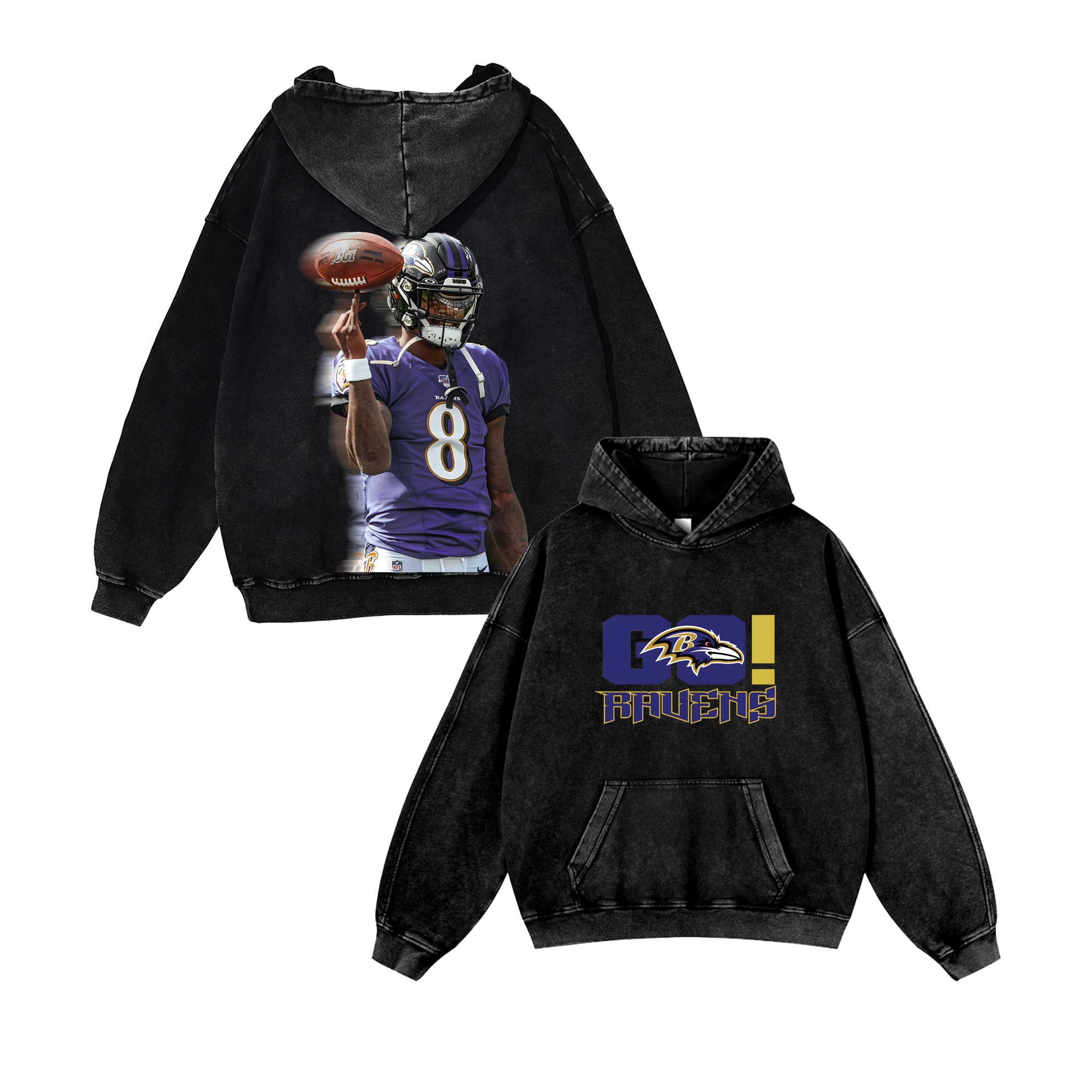 Casual Washed Hoodie Baltimore Ravens Lamar Jackson