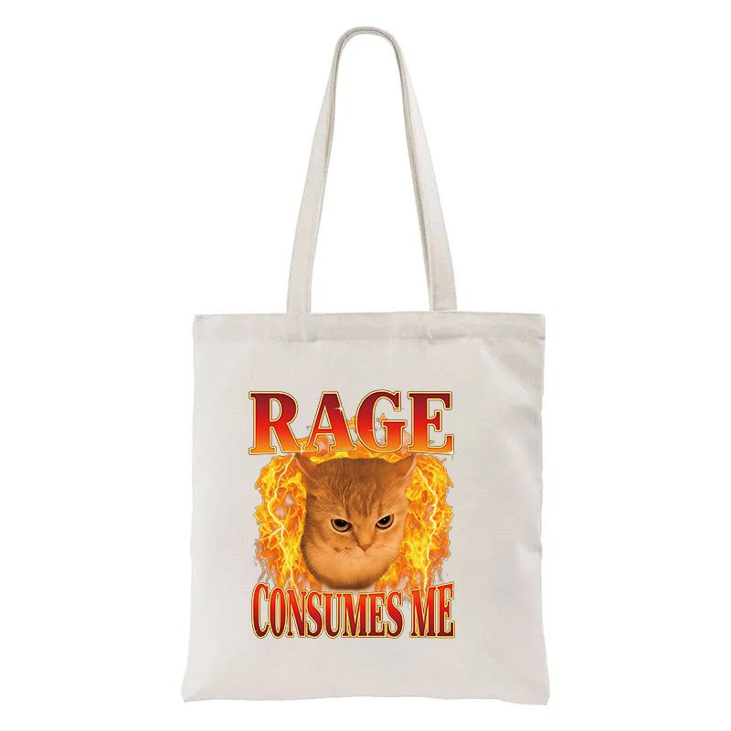 Rage Consumes Me Edgy Funny Cat Meme Tote Bag