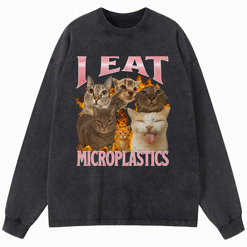 I Eat Microplastics Funny Cat Meme Long Sleeve Washed T-Sh