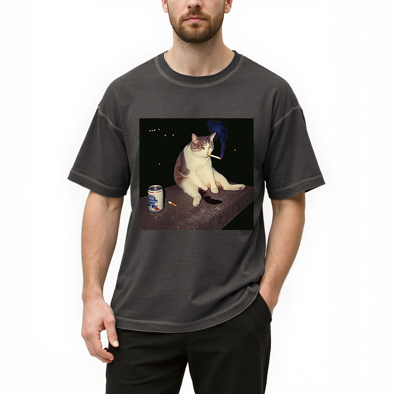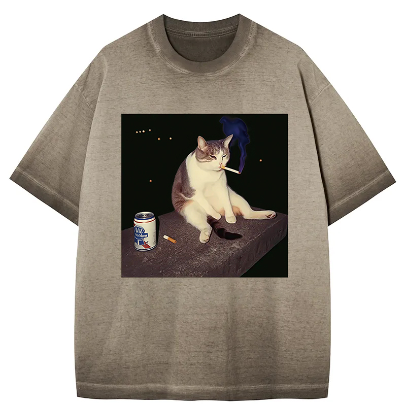 Funny Smoking Cat Meme Gradient Washed T-Shirt