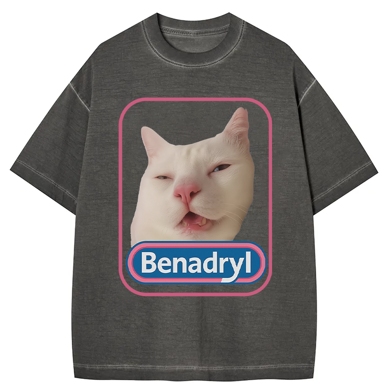 Funny Benadryl Meme Cat Gradient Washed T-Shirt