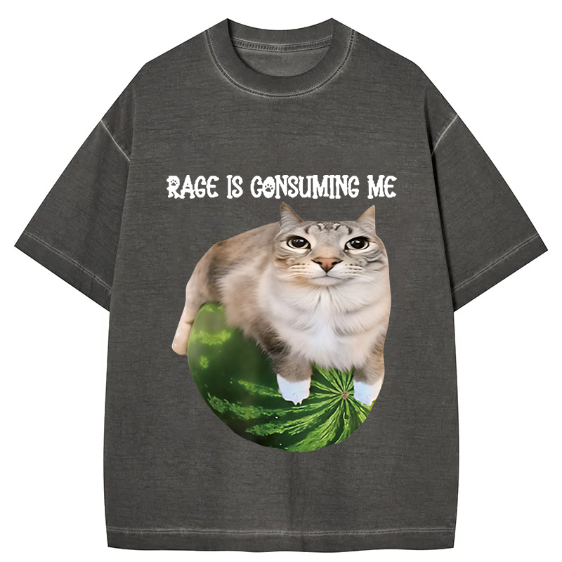 Rage Consumes Me Edgy Funny Cat Meme Back Washed T-Shirt