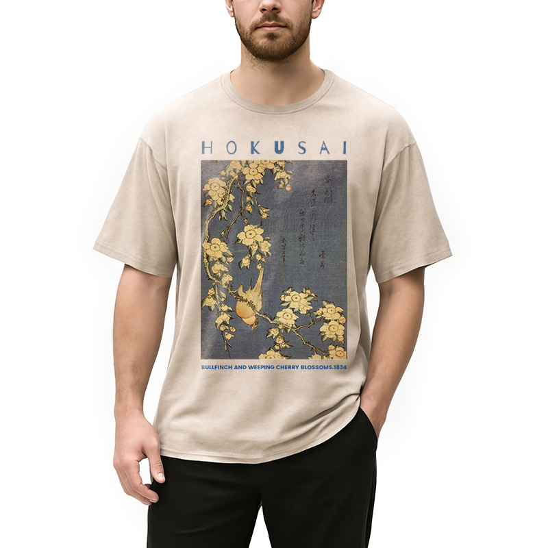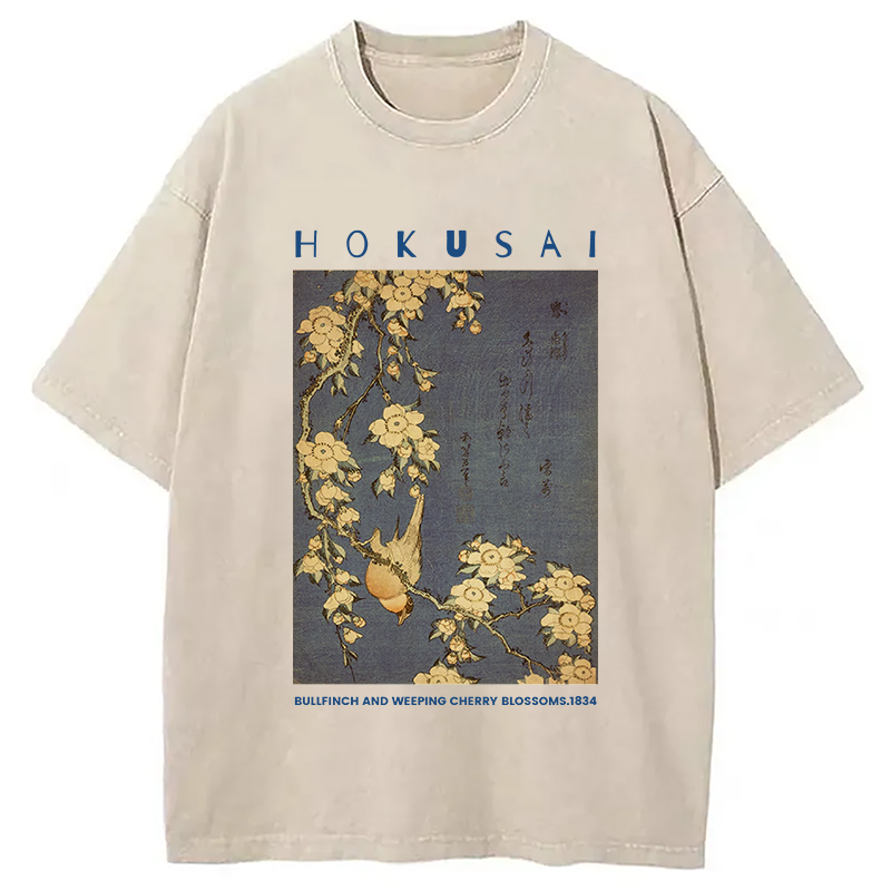 Bullfinch and Weeping Cherry Blossoms Washed T-Shirt