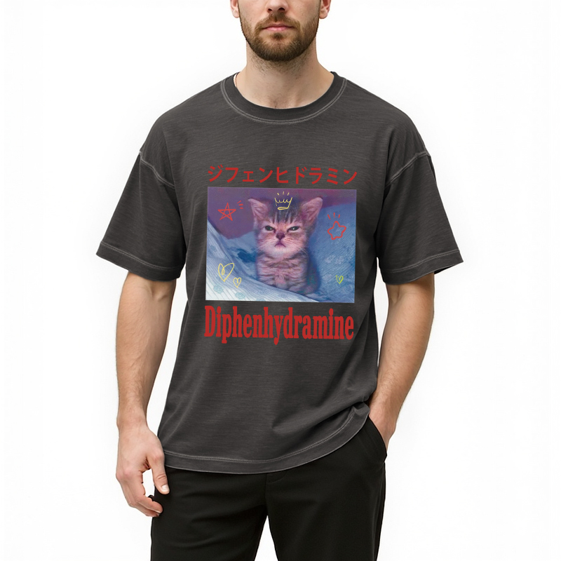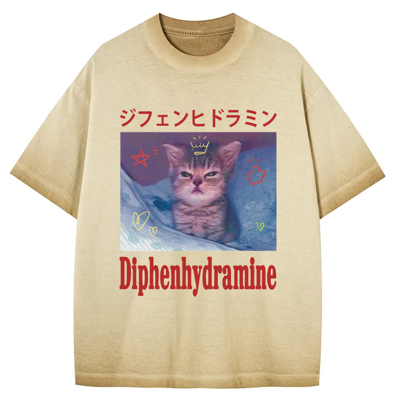 Diphenhydramine Cat Funny Meme Gradient Washed T-Shirt