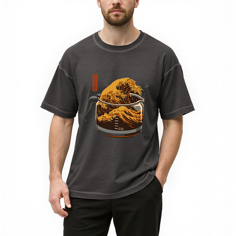 The Great Wave Off Coffee Japanese Gradient Washed T-Shirt