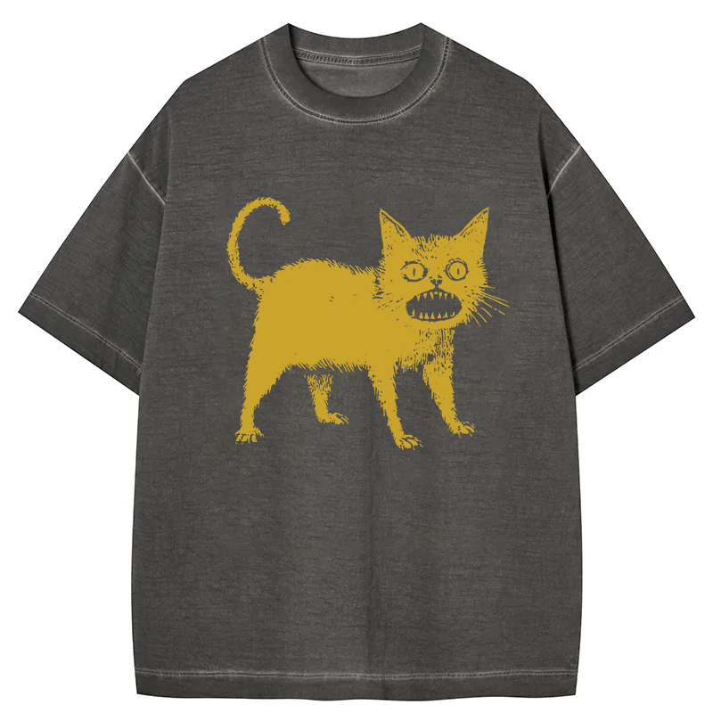 Horrible Japanese Cat Gradient Washed T-Shirt