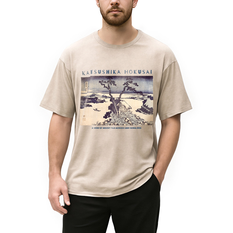A View of Mount Fuji Across Lake Suwa Washed T-Shirt