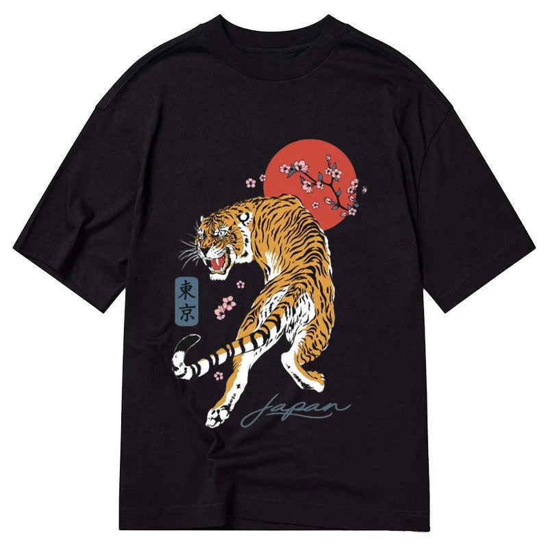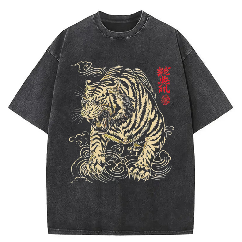 Tiger Blossom Japanese Sakura Back Washed T-Shirt