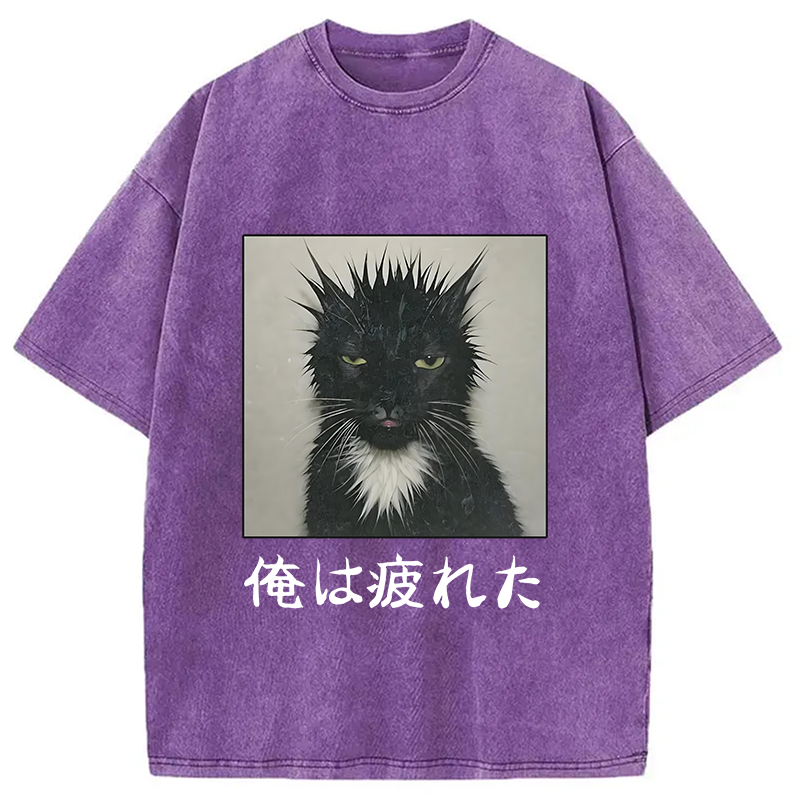 Cat Eating Spaghetti Funny Gradient Washed T-Shirt