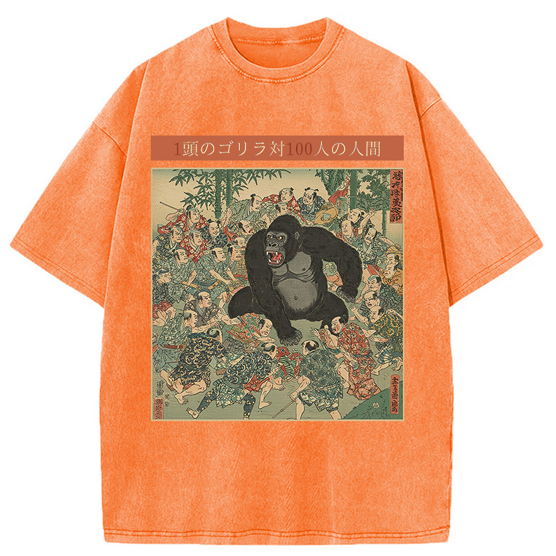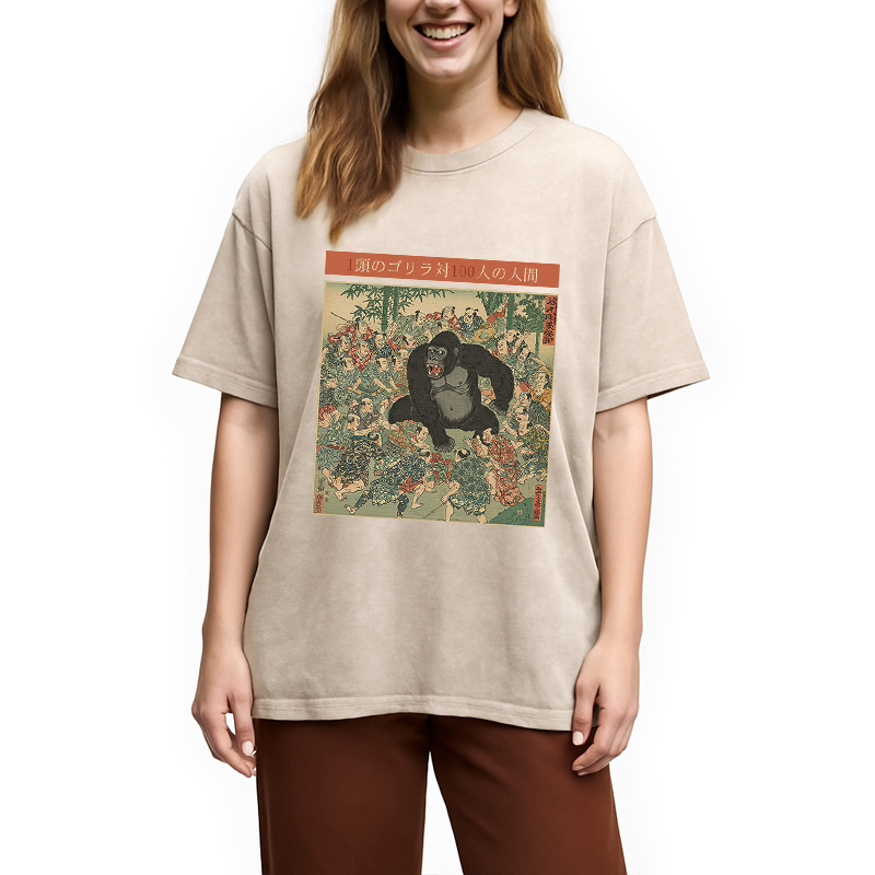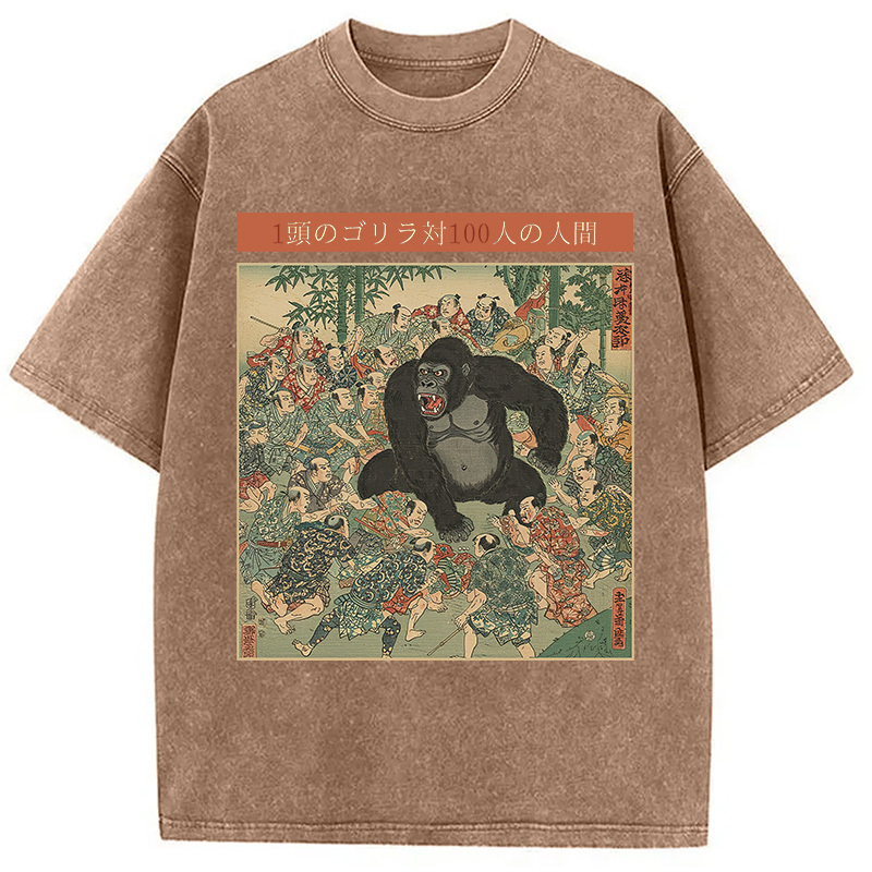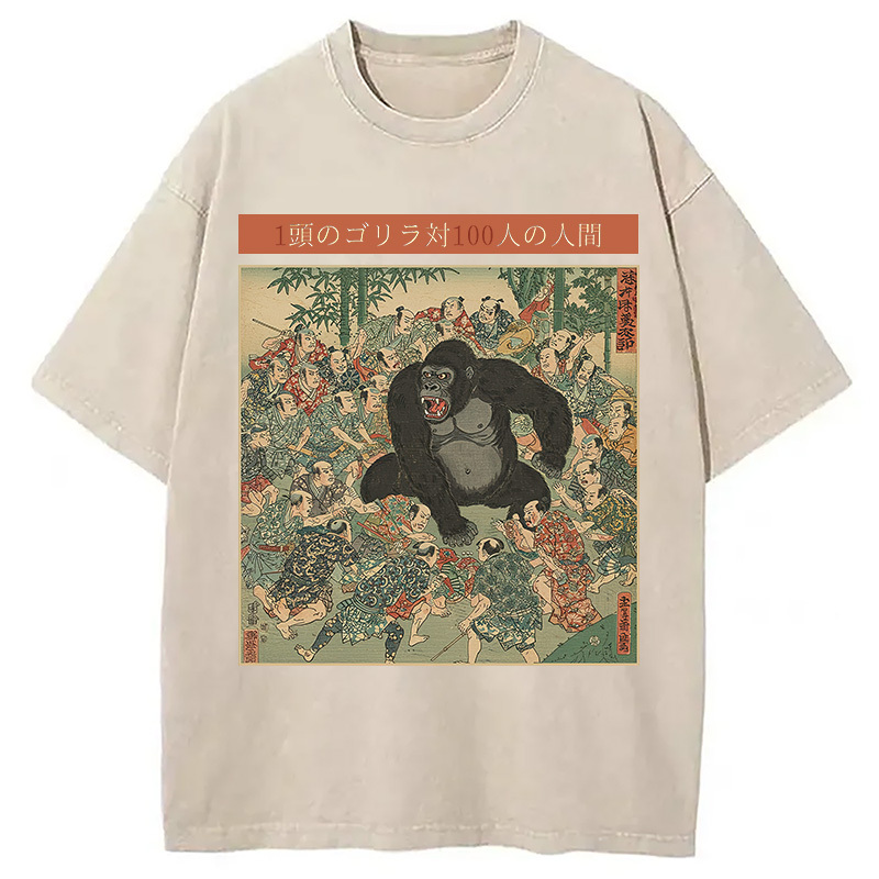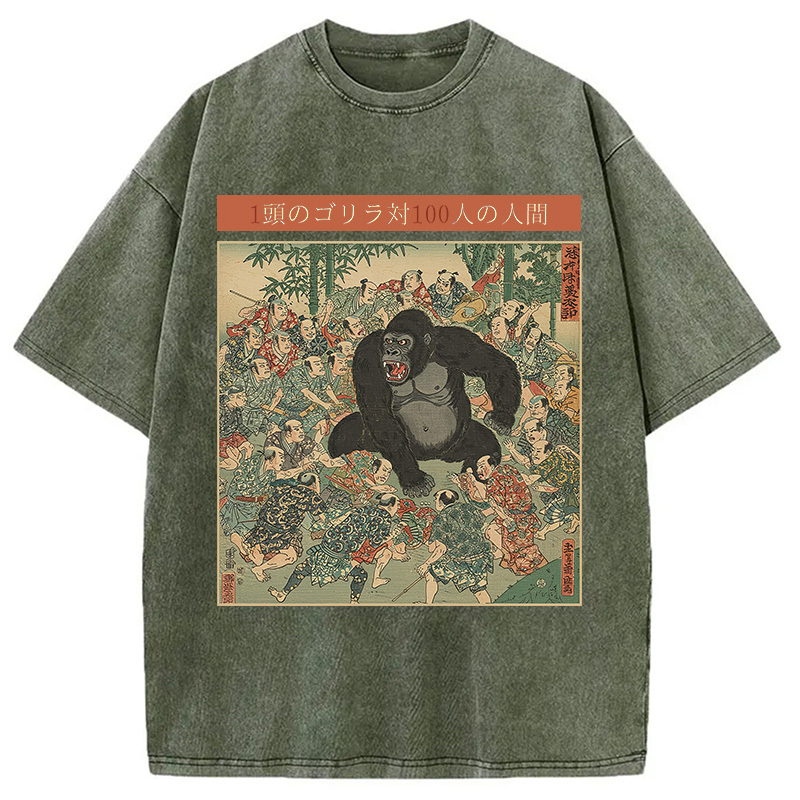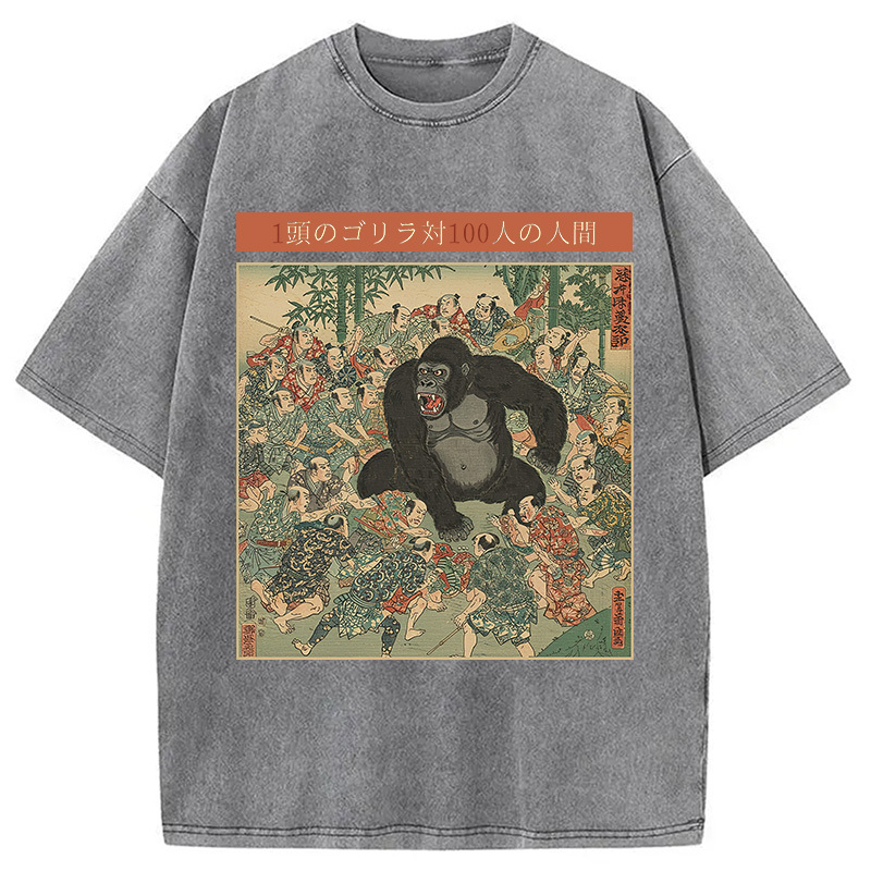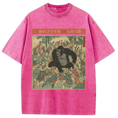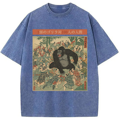 1 Gorilla vs 100 Men Meme Washed T-Shirt