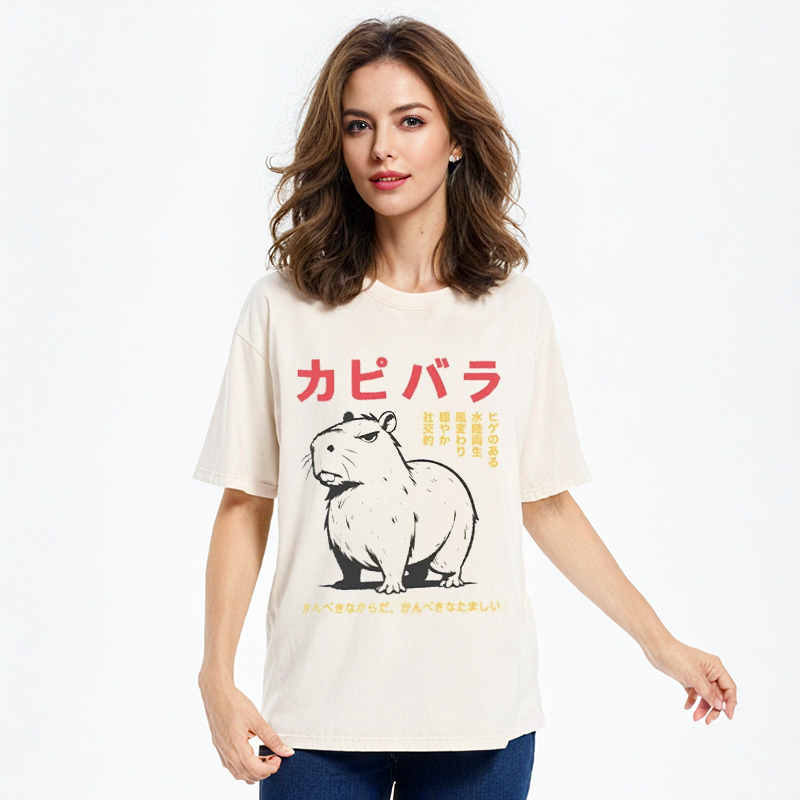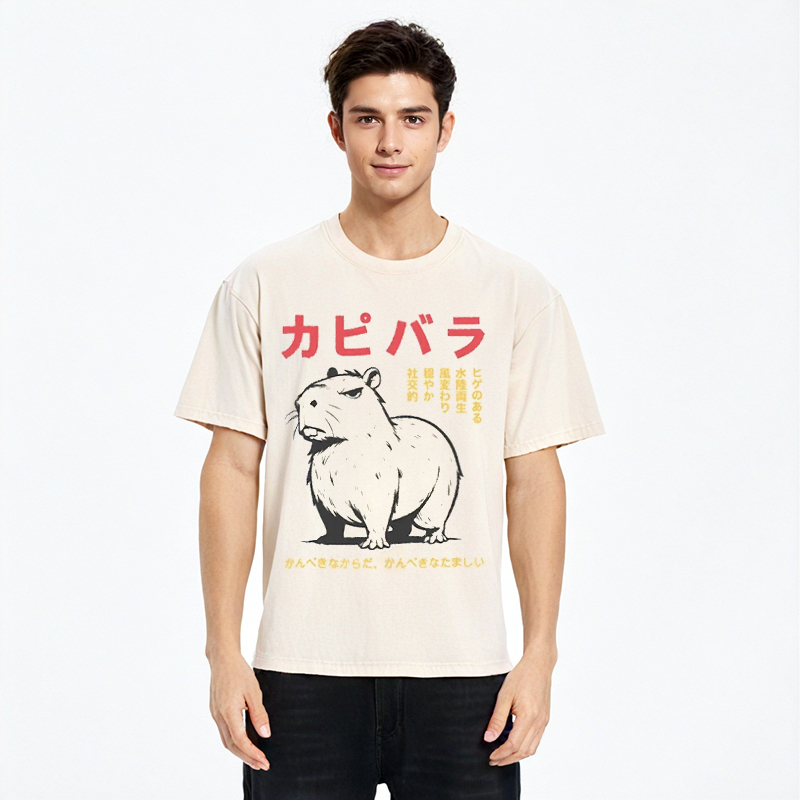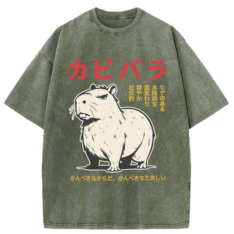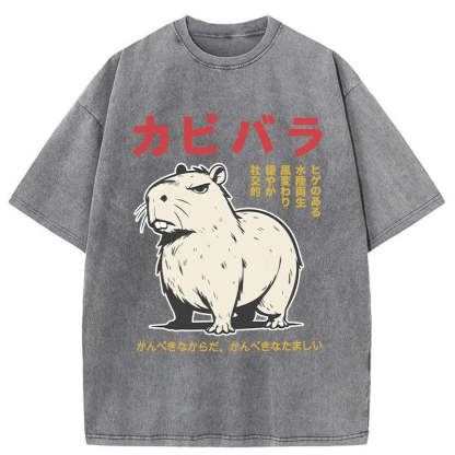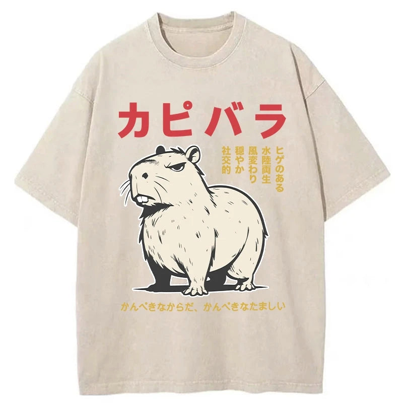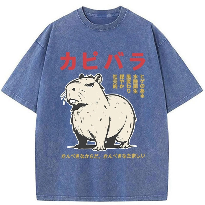 Angry Capybara Japan Washed T-Shirt For Sale