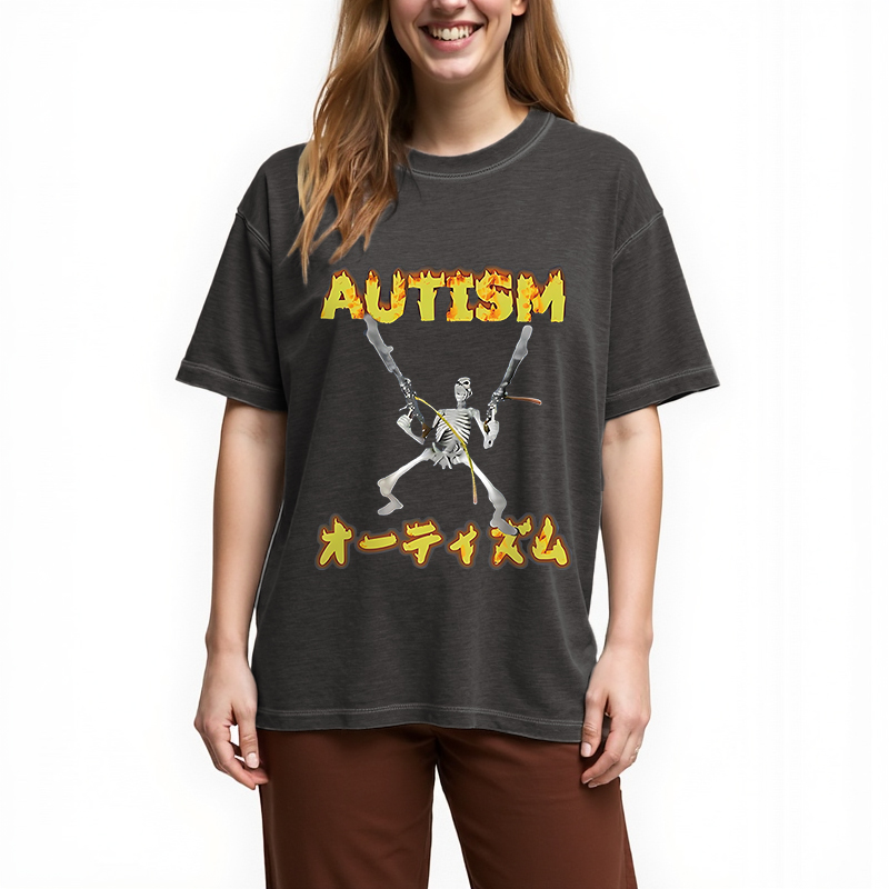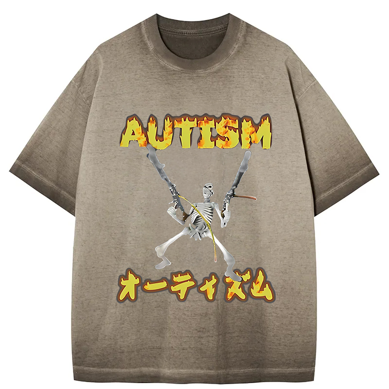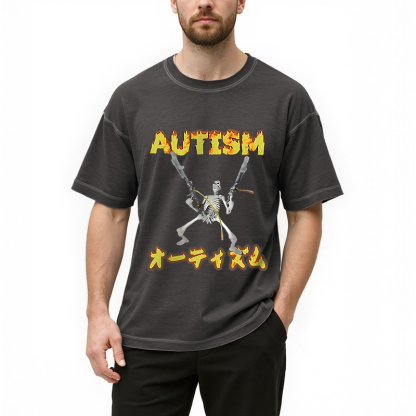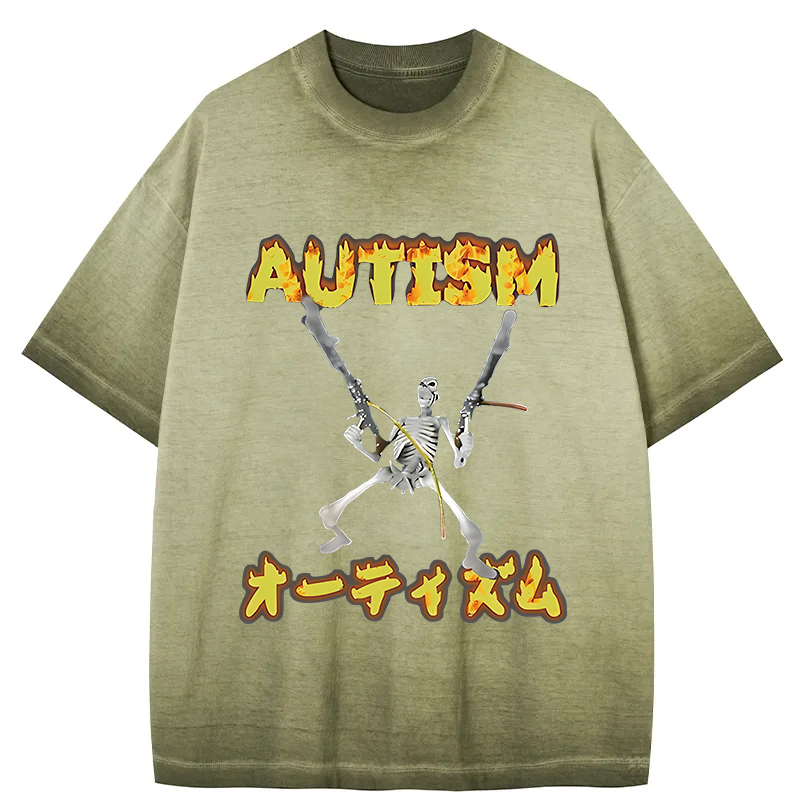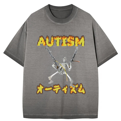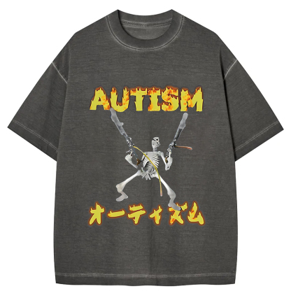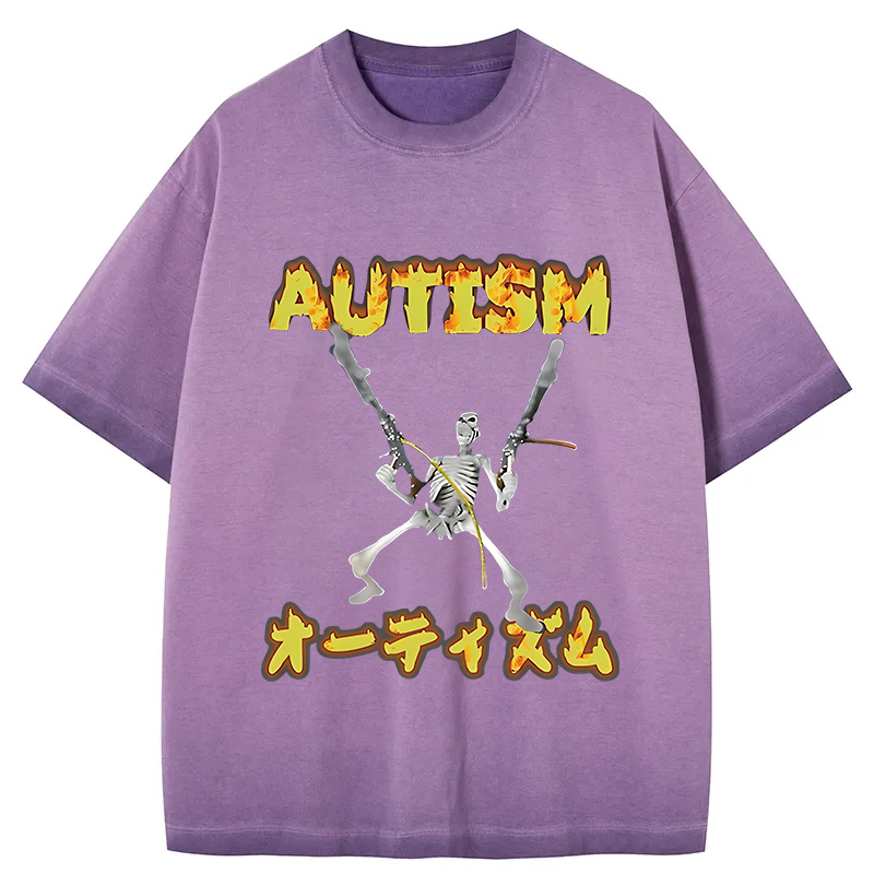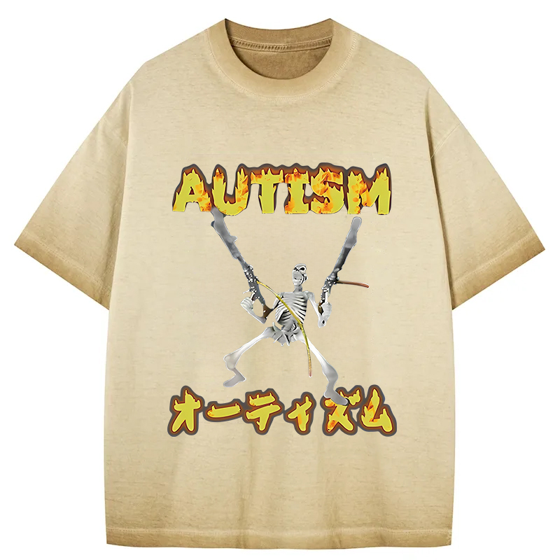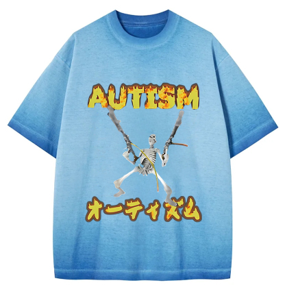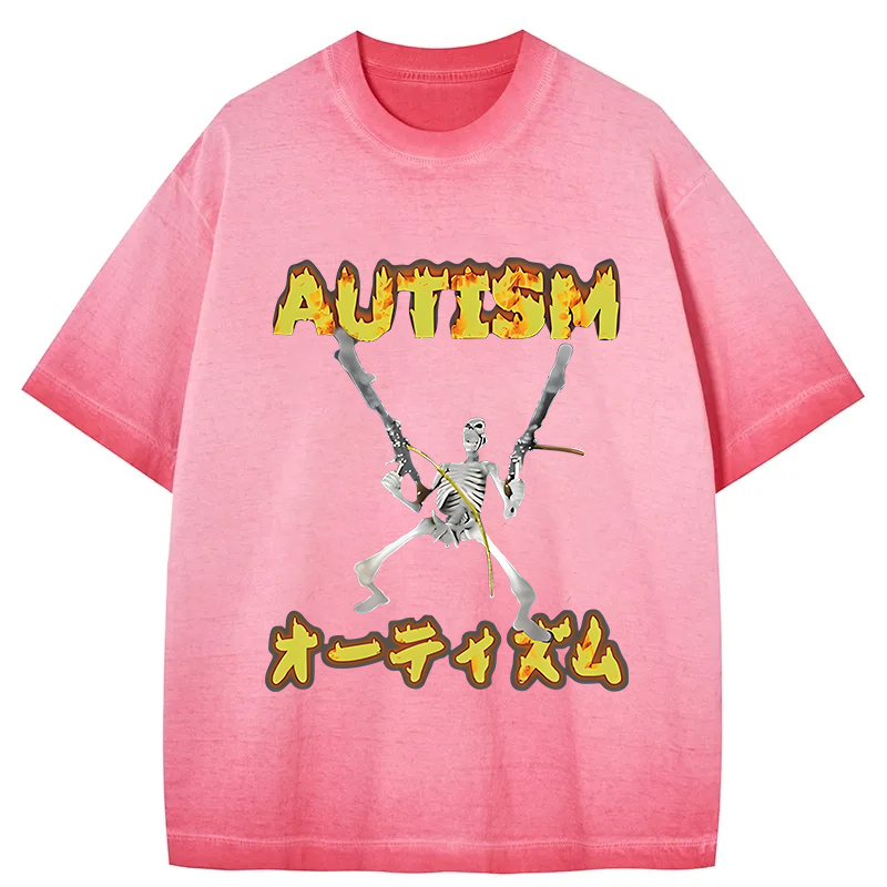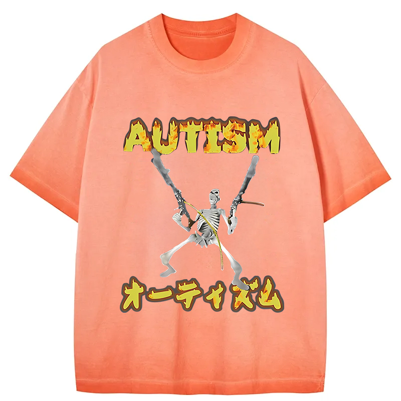 Autism Funny Skeleton Gradient Washed T-Shirt