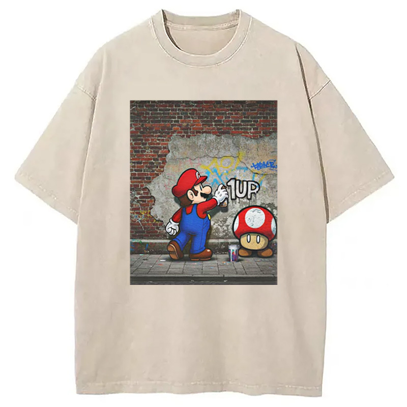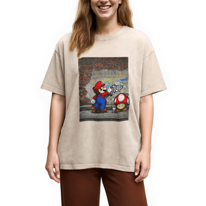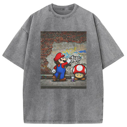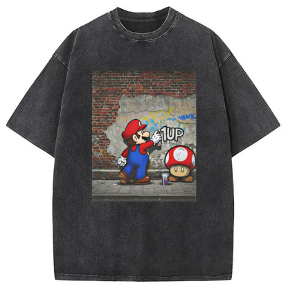 Banksy Mario 1UP Washed T-Shirt