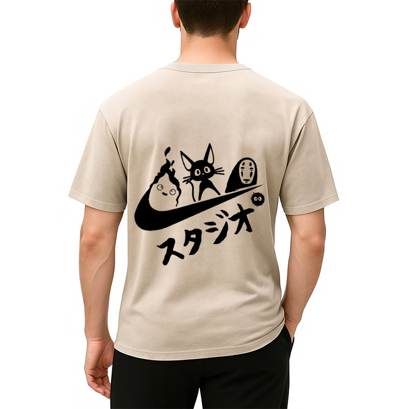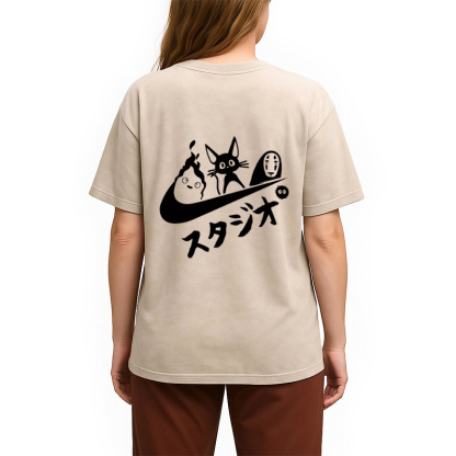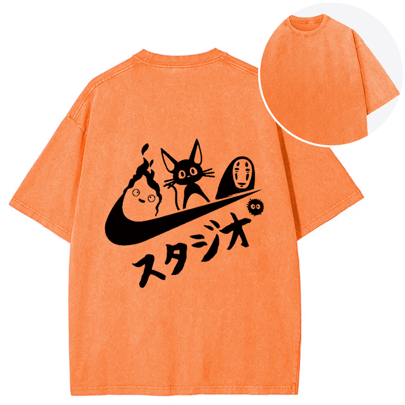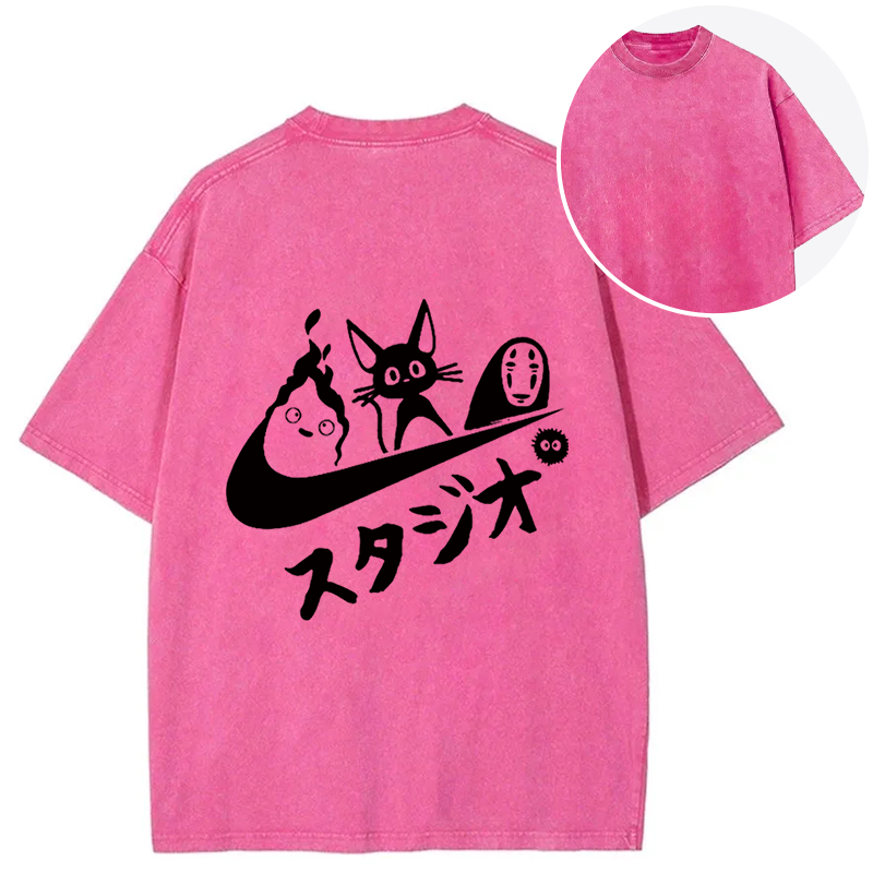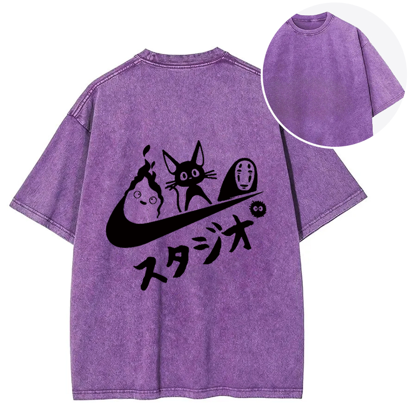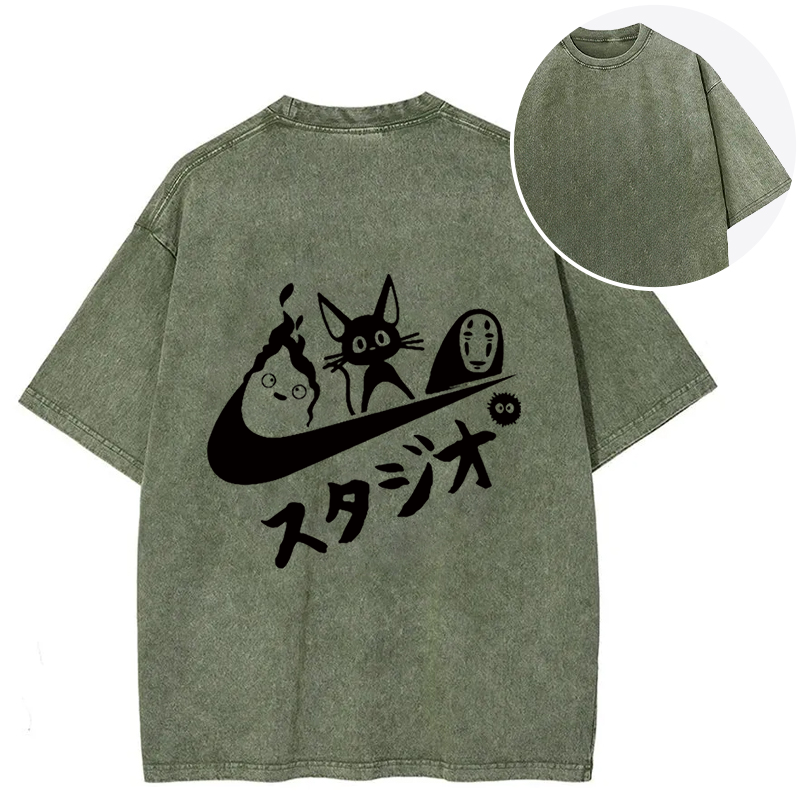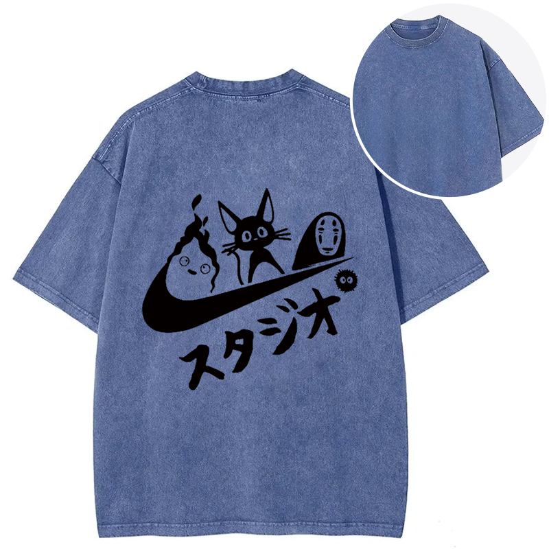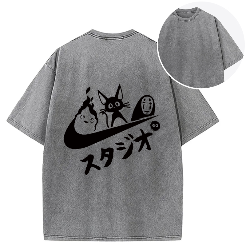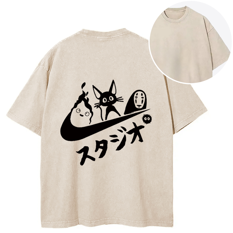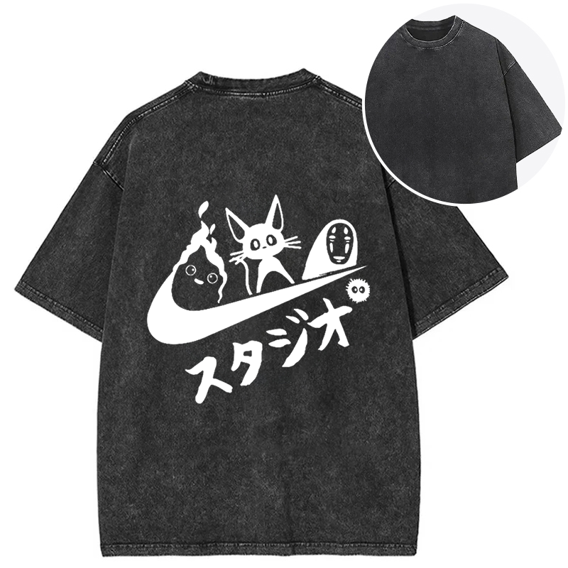Black Cat Ghibli Vintage Back Washed T-Shirt