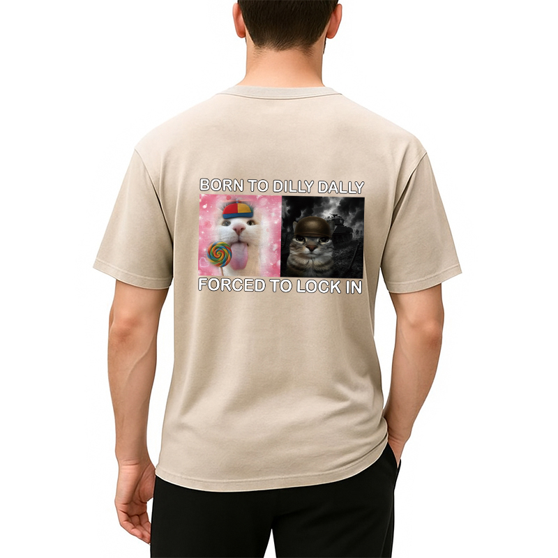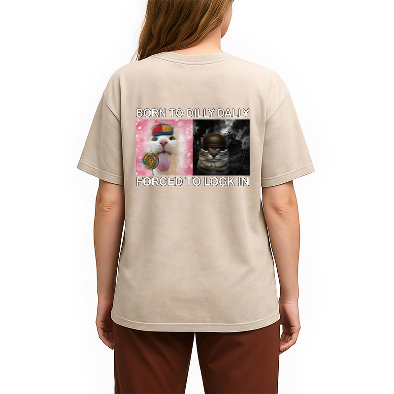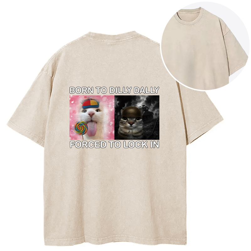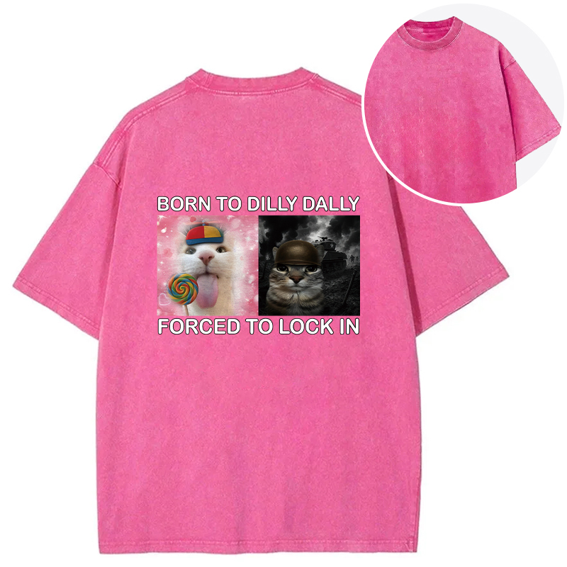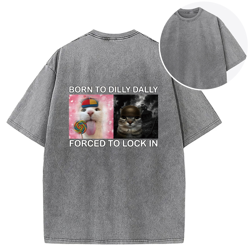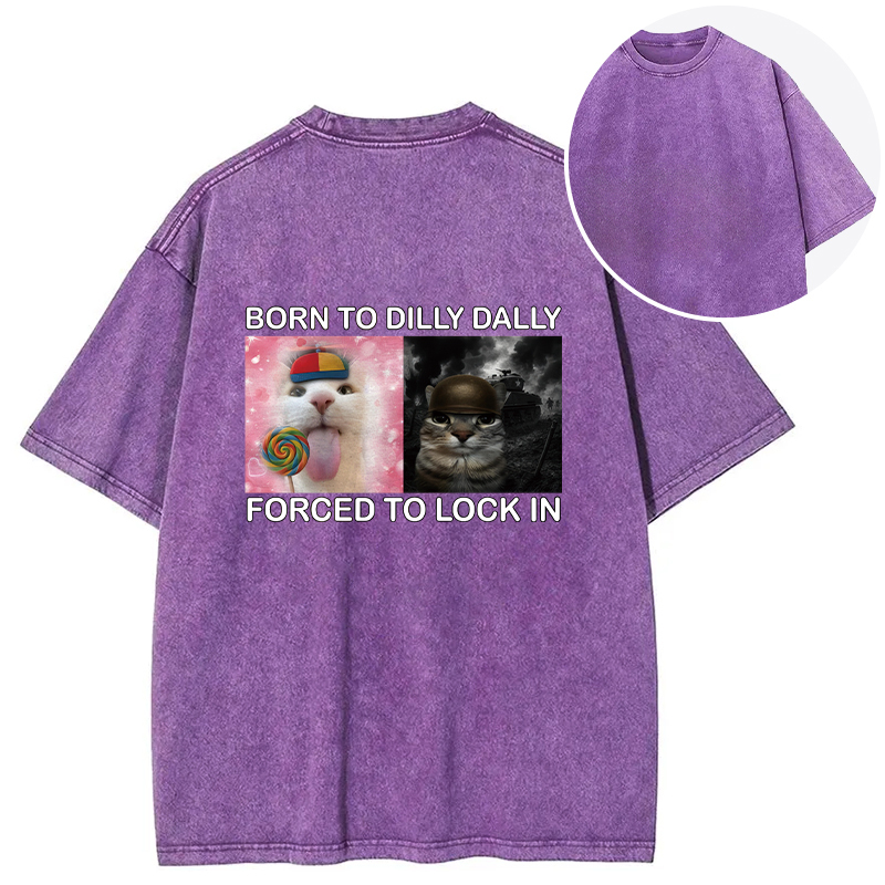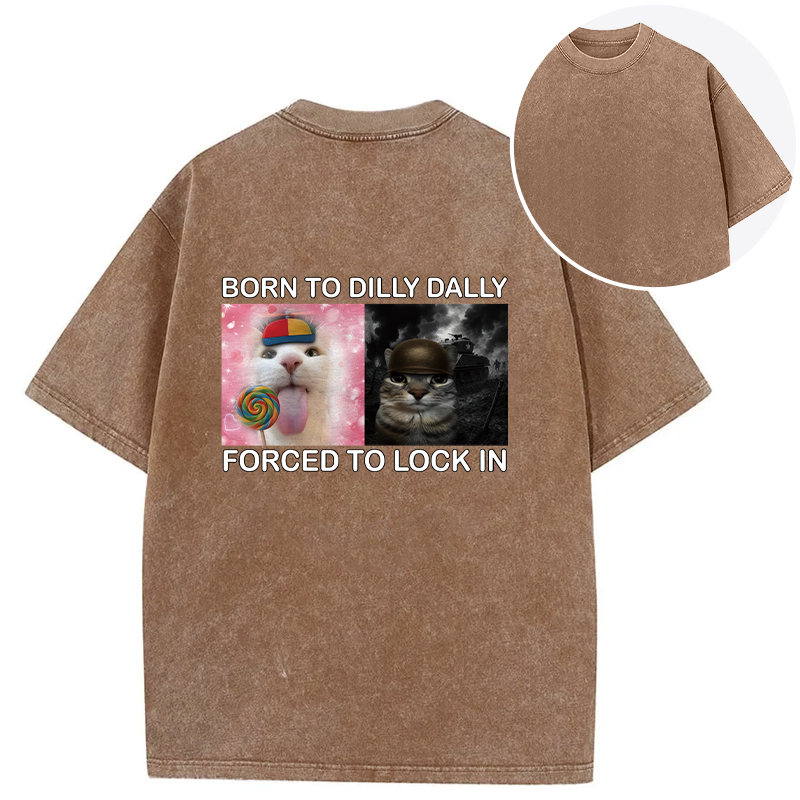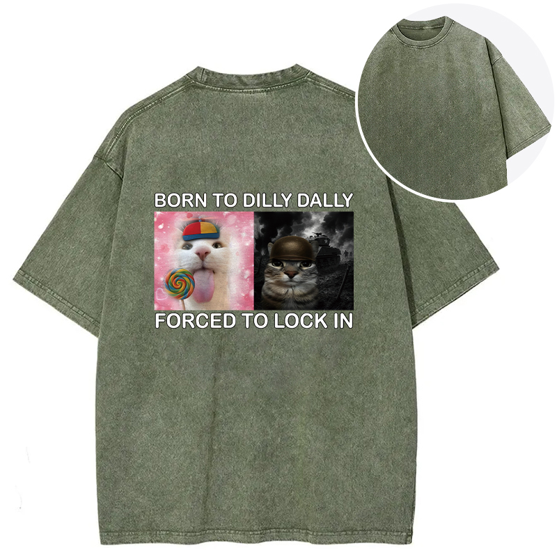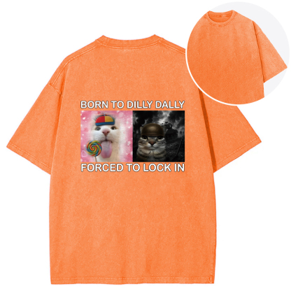 Born to Dilly Dally Funny Cat Meme Back Washed T-Shirt