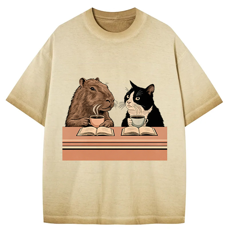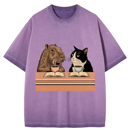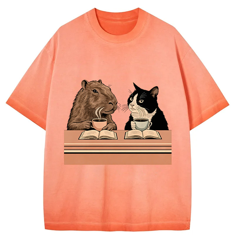 Capybara And Cat Talk Gradient Washed T-Shirt