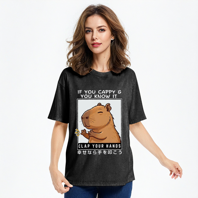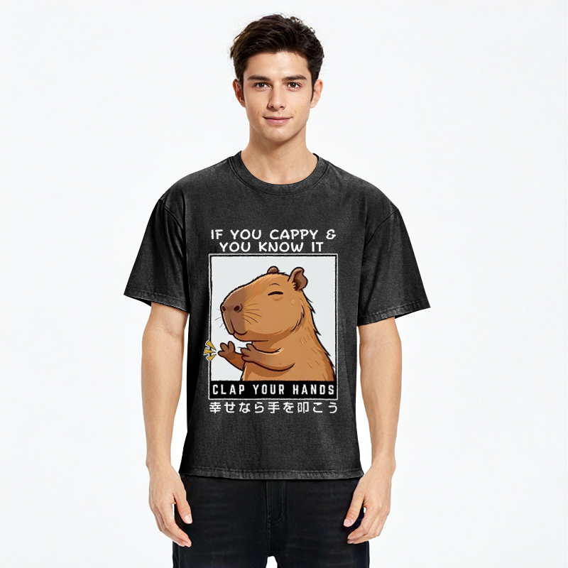 Capybara Clapping Washed T-Shirt For Sale