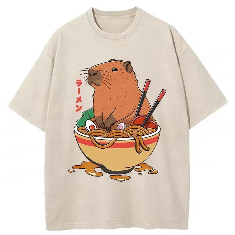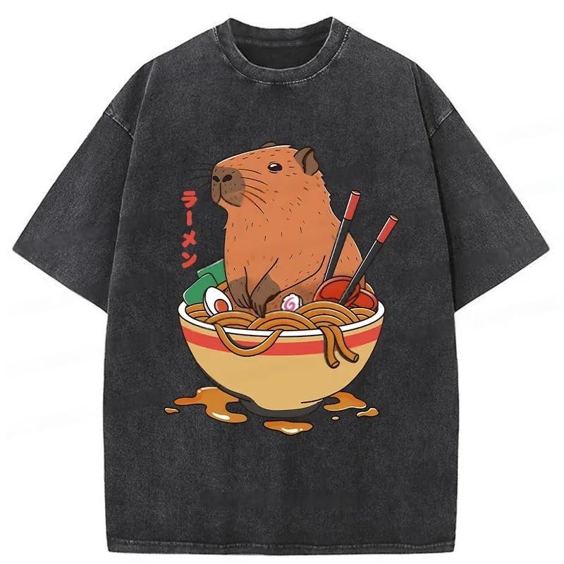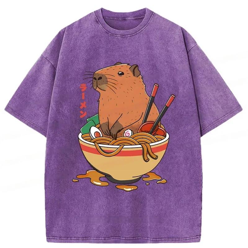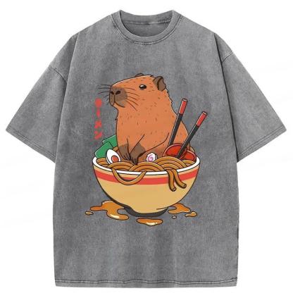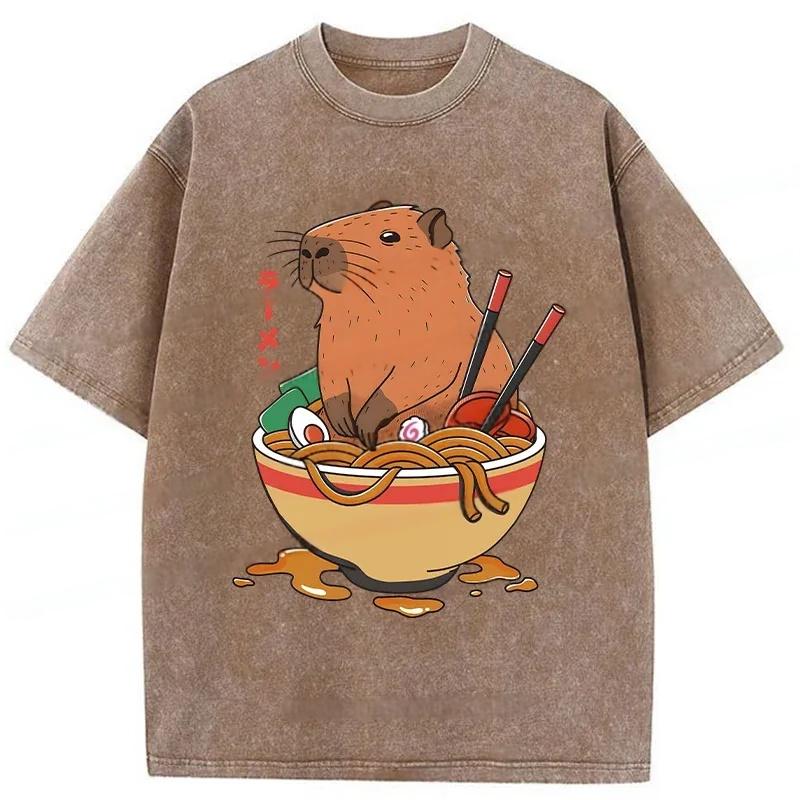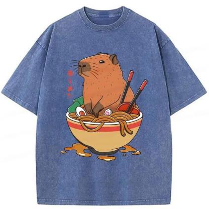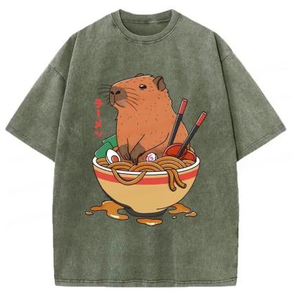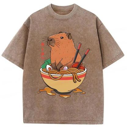 Capybara Ramen Funny Washed T-Shirt