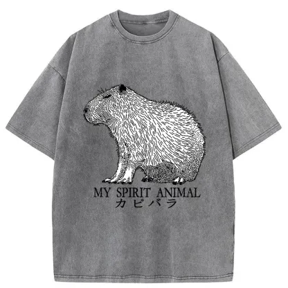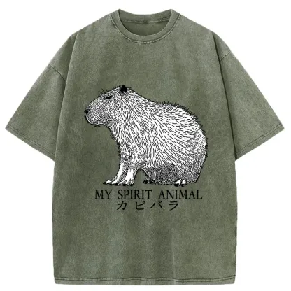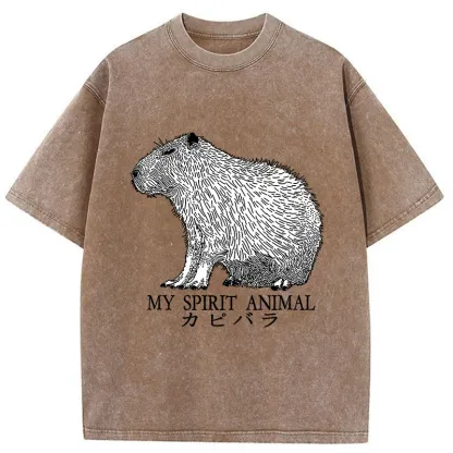 Capybara Spirit Washed T-Shirt For Sale