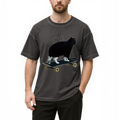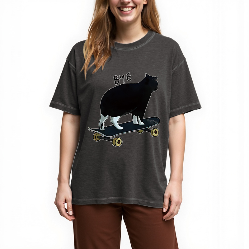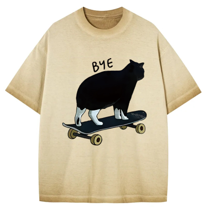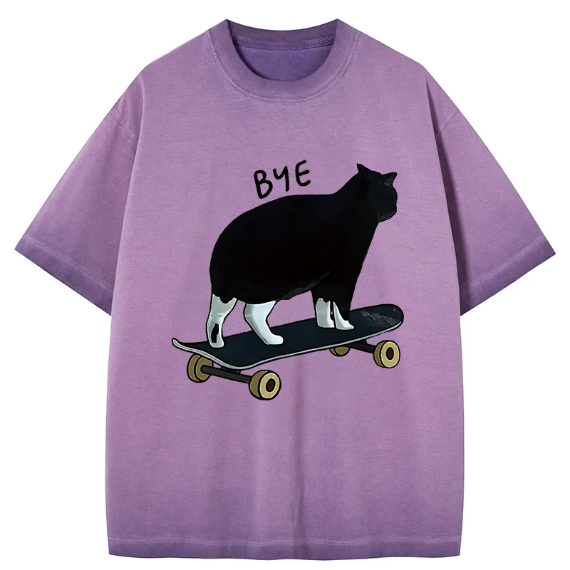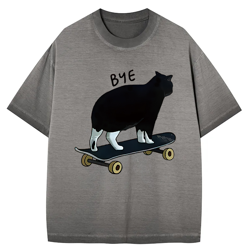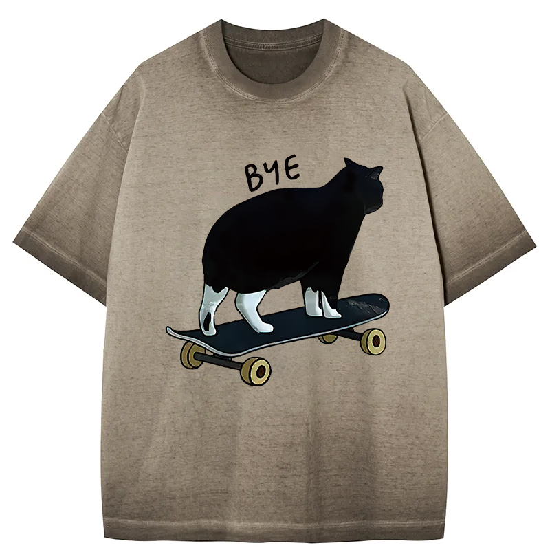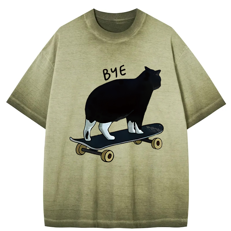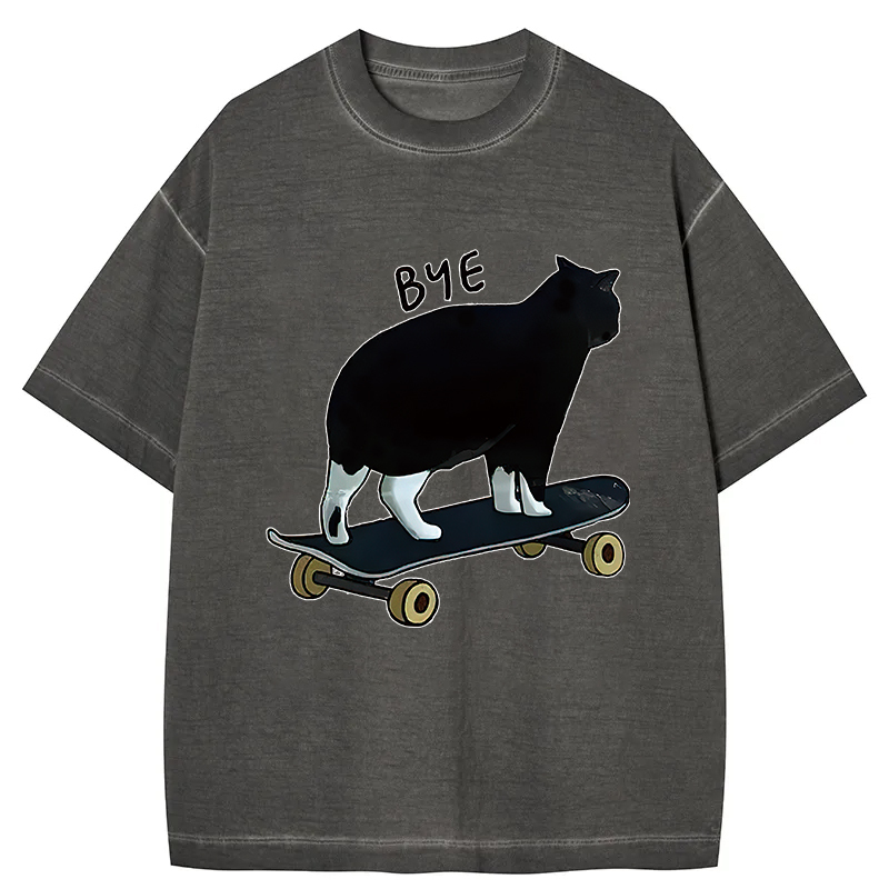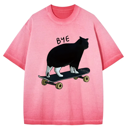 Cat On Skateboard Gradient Washed T-Shirt