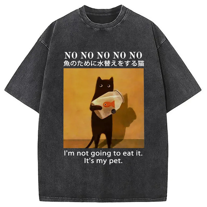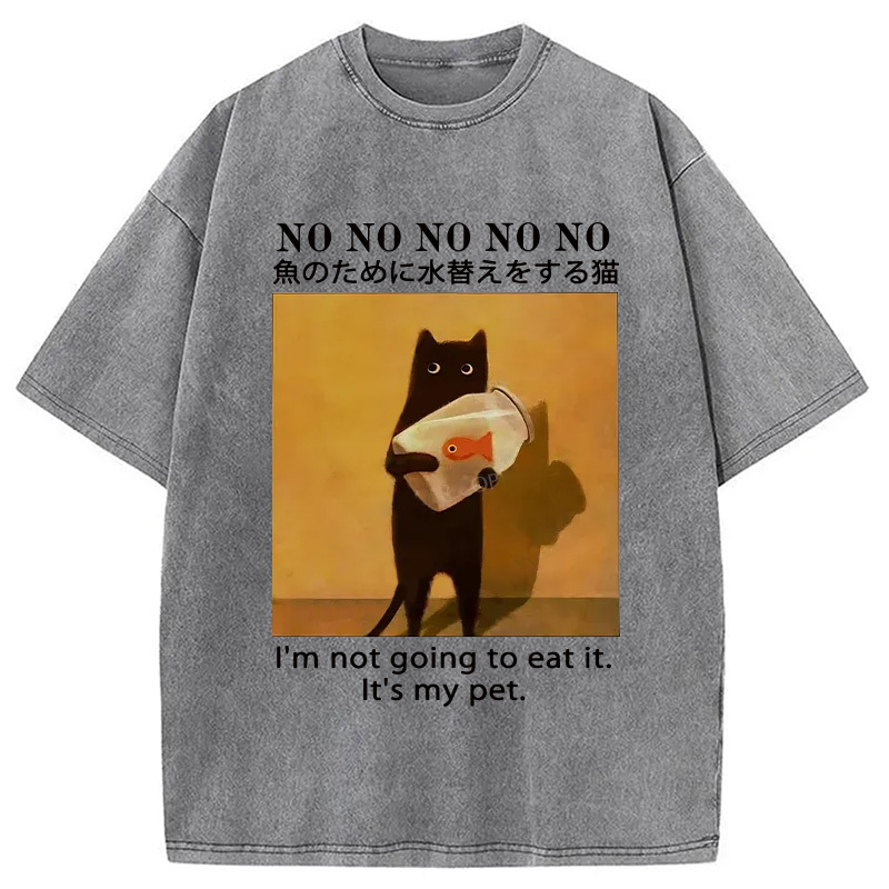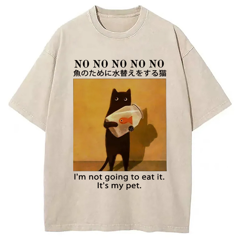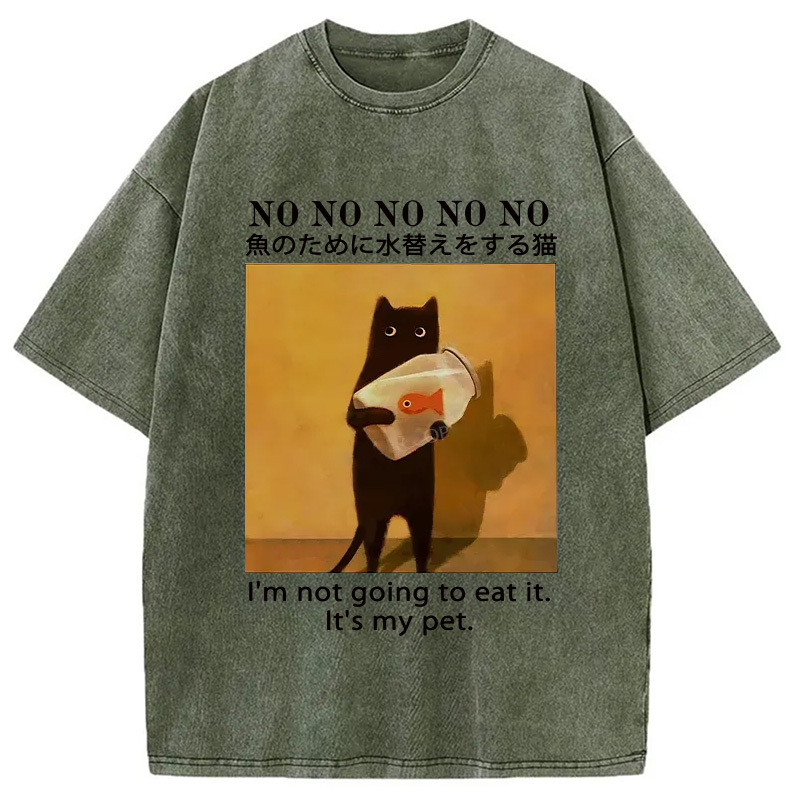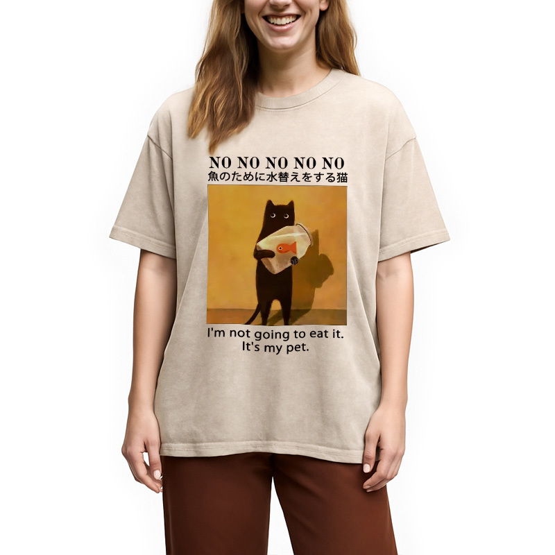 Cat Raising Fish Washed T-Shirt