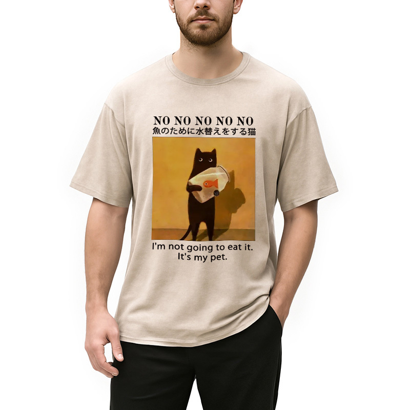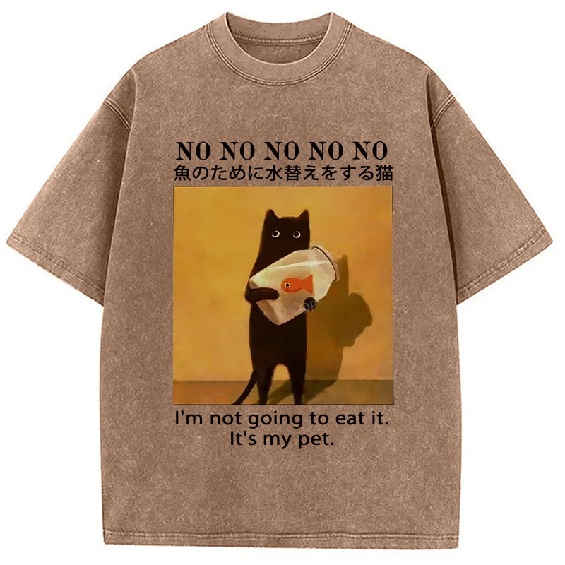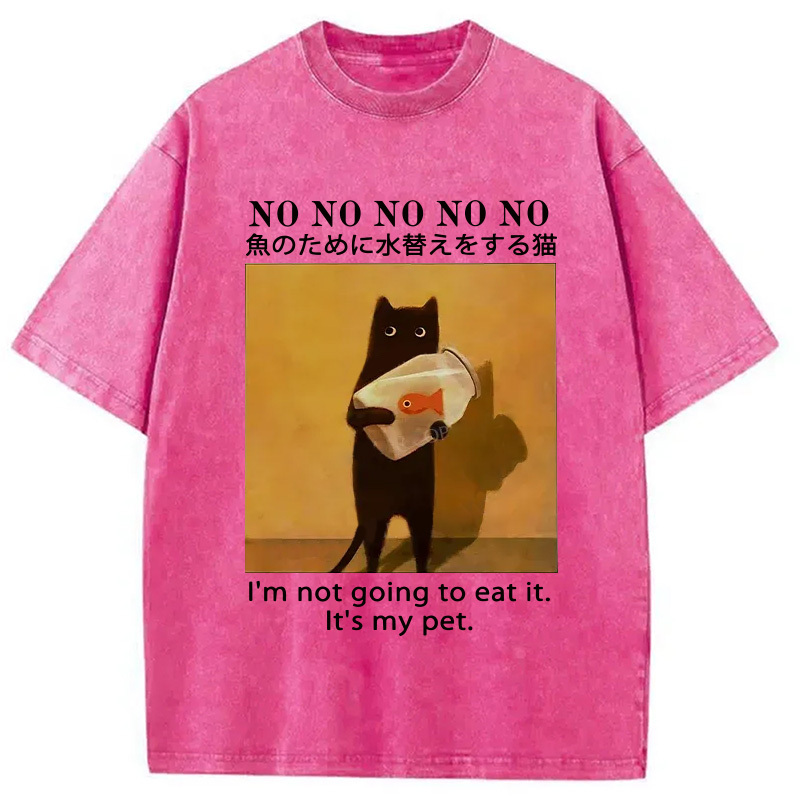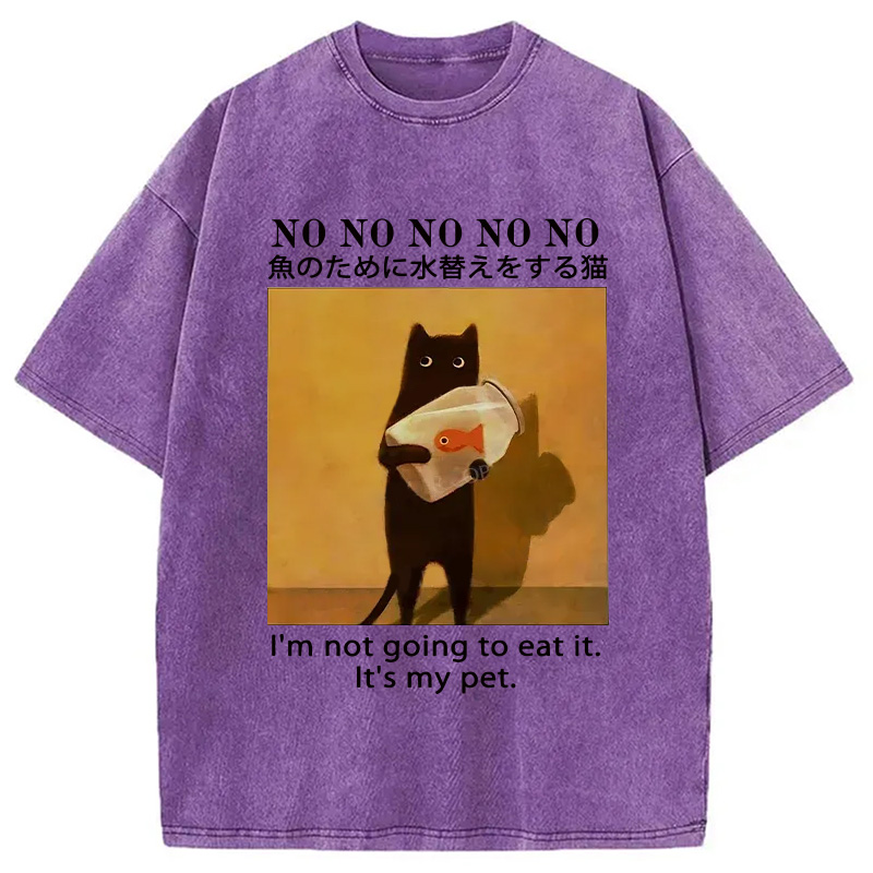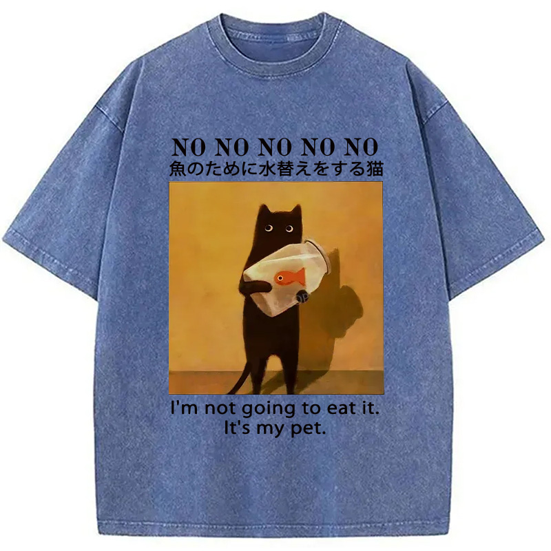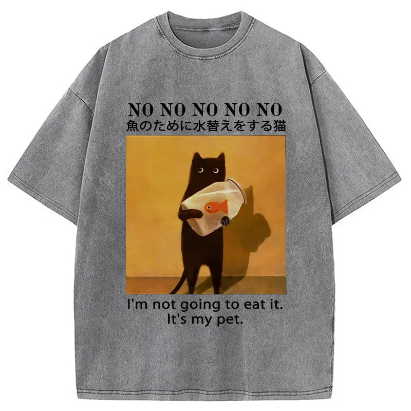 Cat Raising Fish Washed T-Shirt