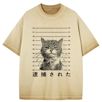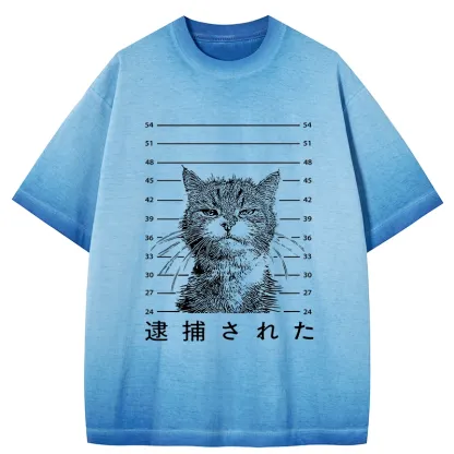 Cat That Was Arrested Gradient Washed T-Shirt