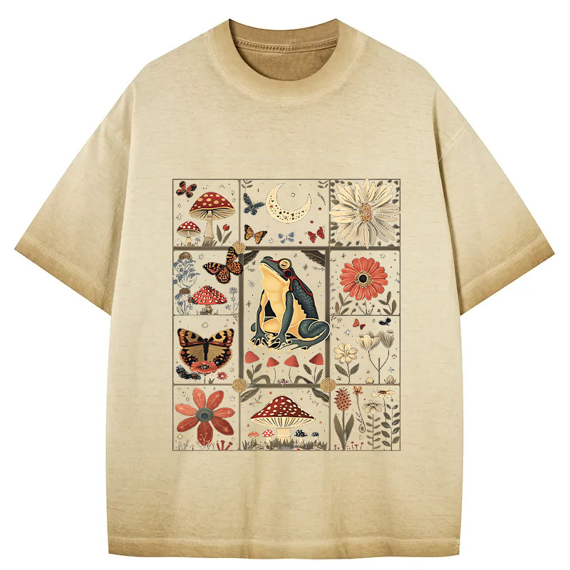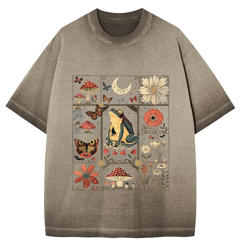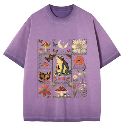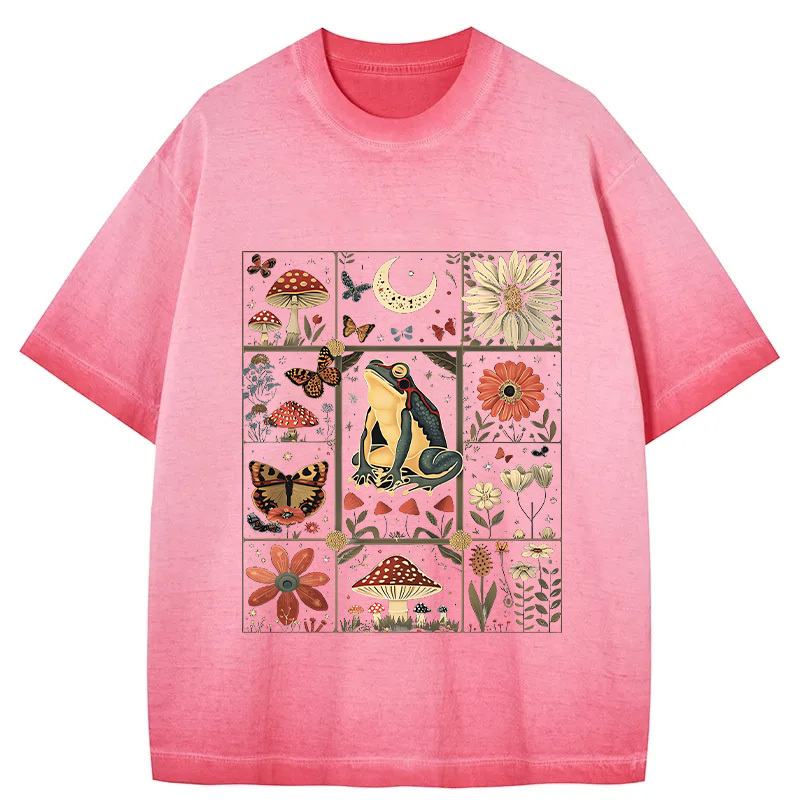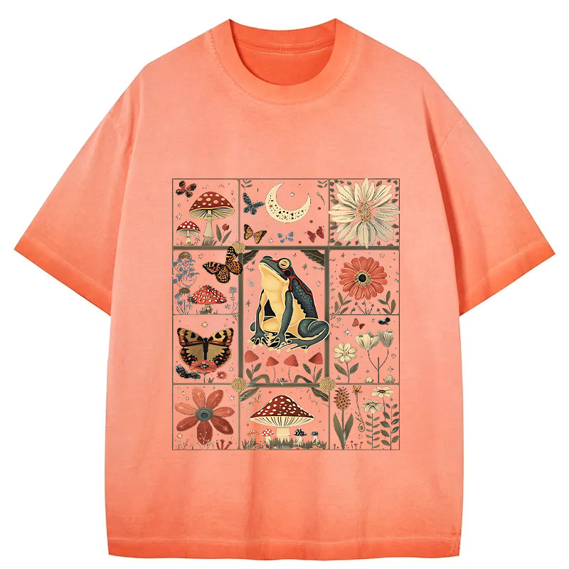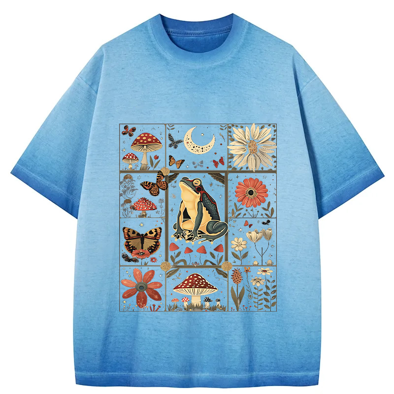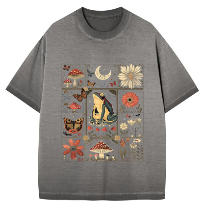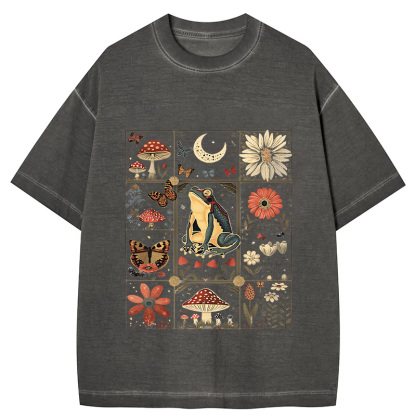 Celestial Frog Goblincore Mushroom Gradient Washed T-Shirt