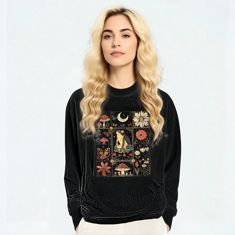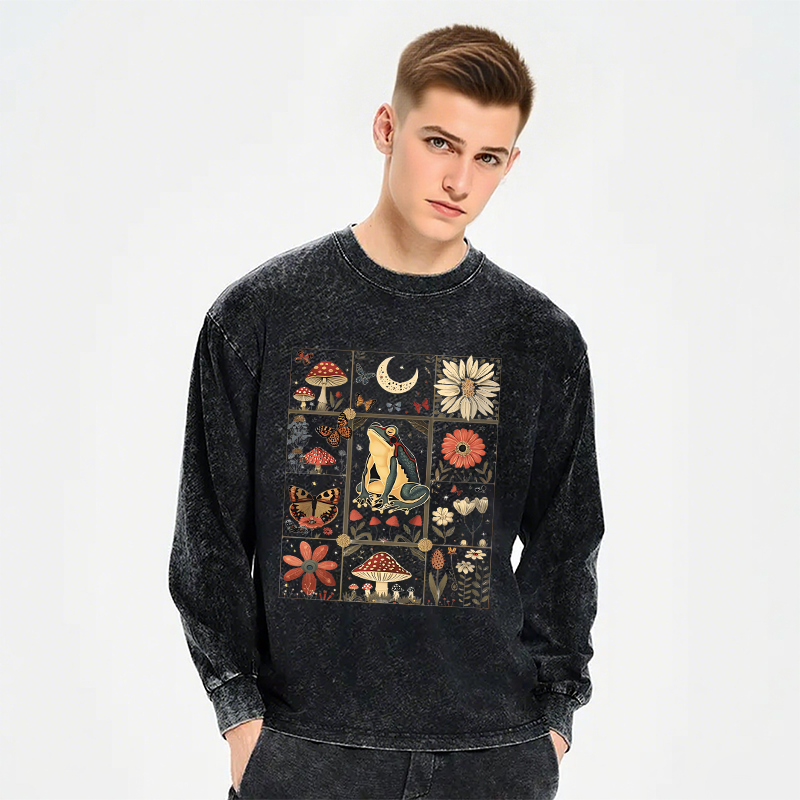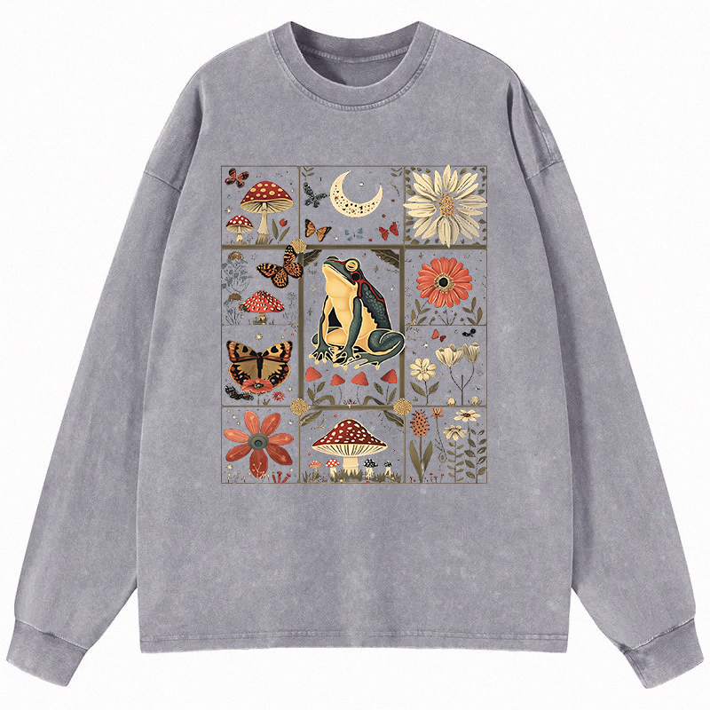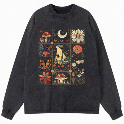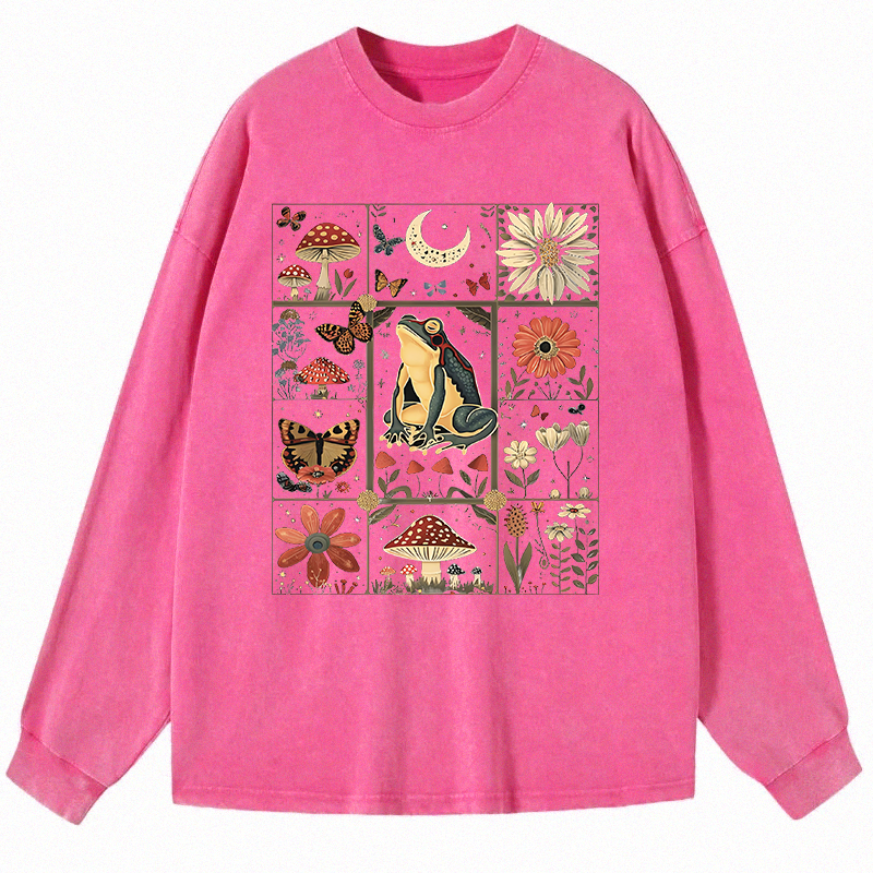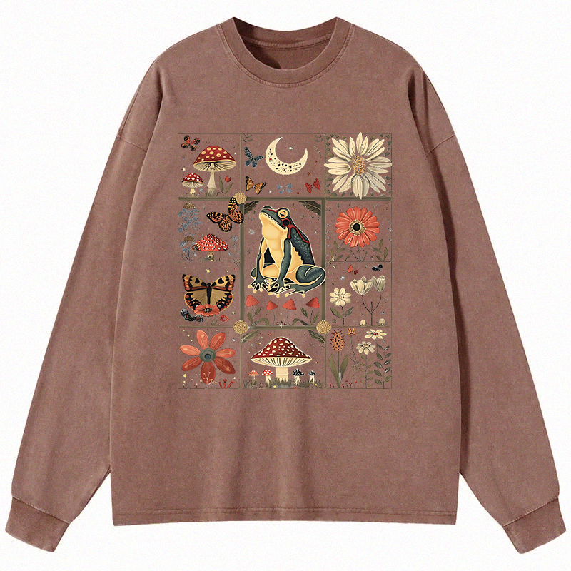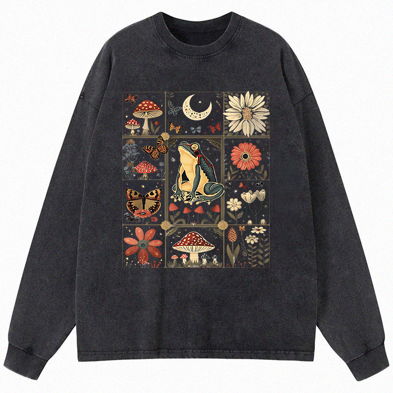 Celestial Frog Goblincore Mushroom Long Sleeve Washed T-Sh