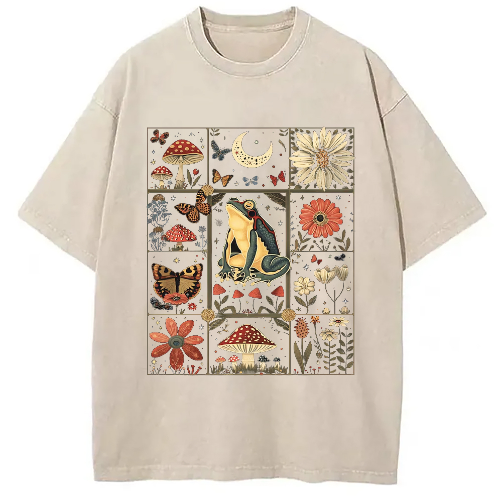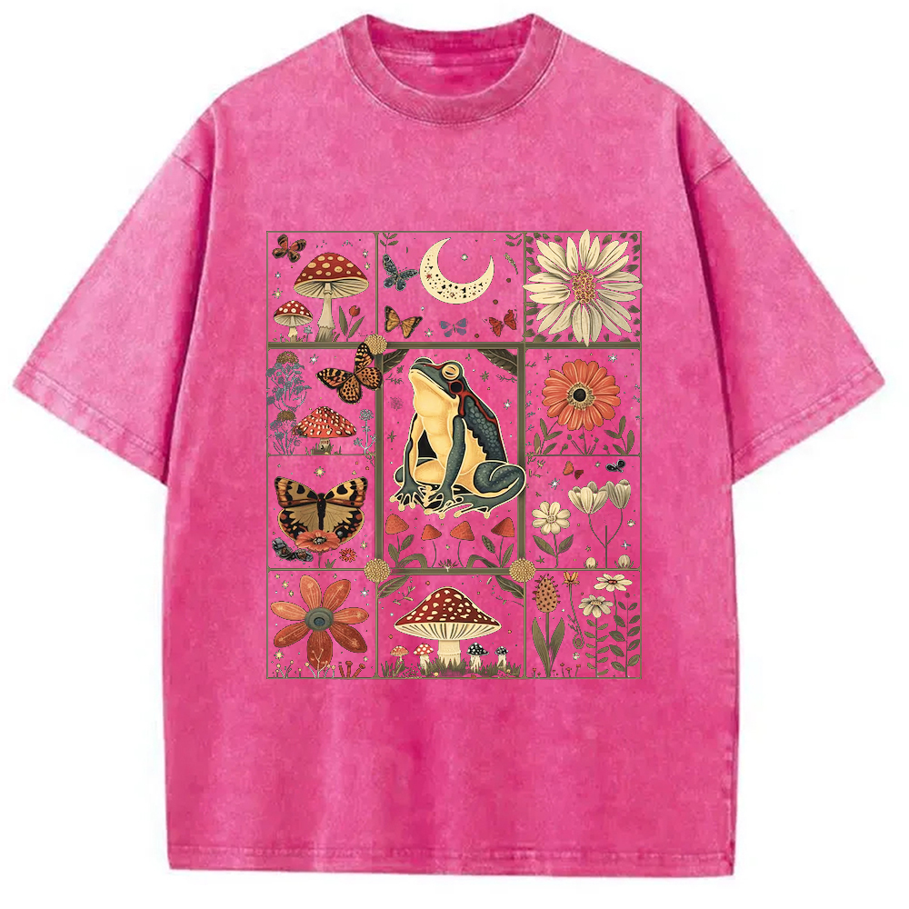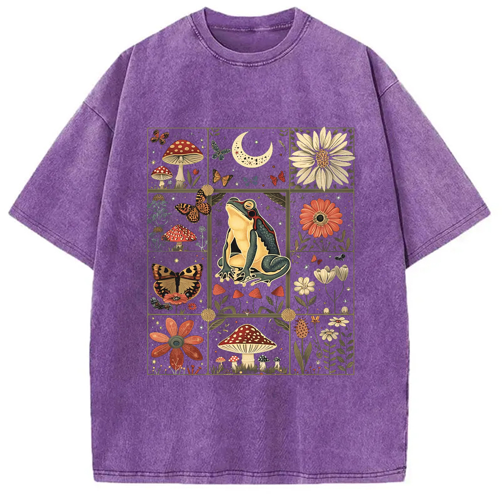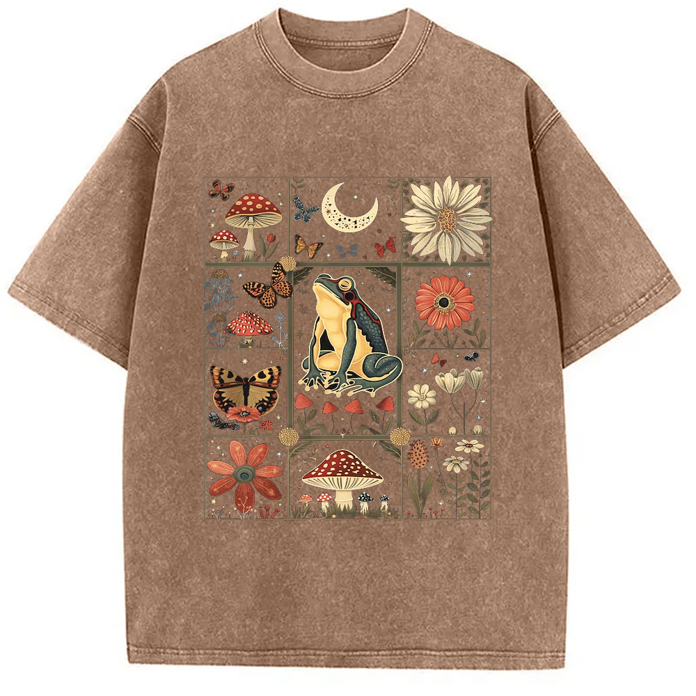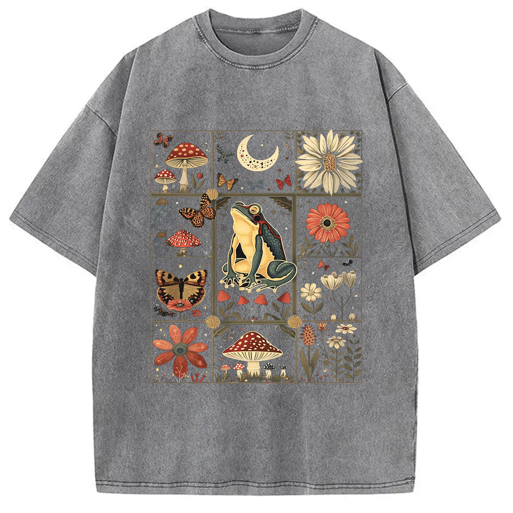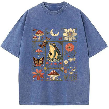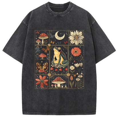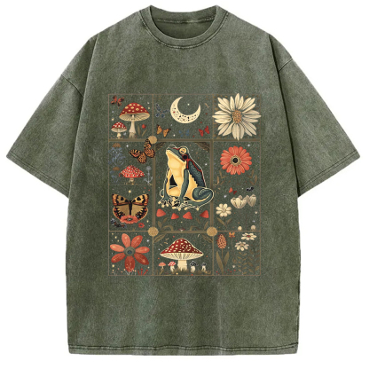 Celestial Frog Goblincore Mushroom Washed T-Shirt