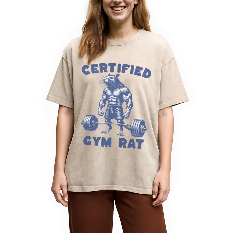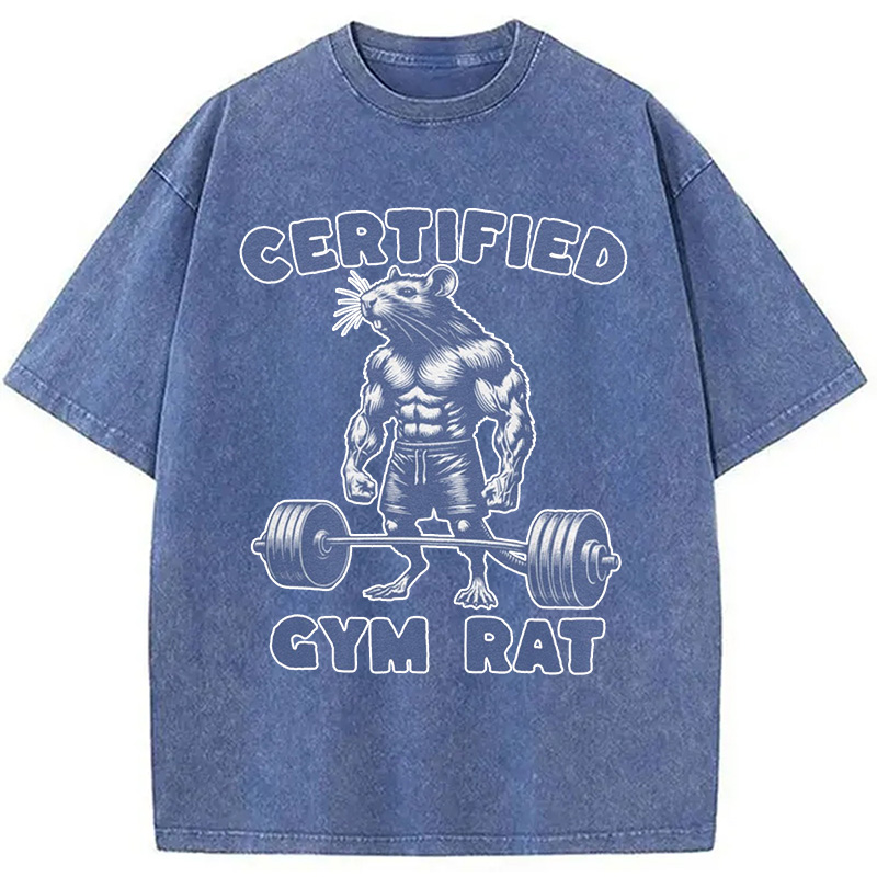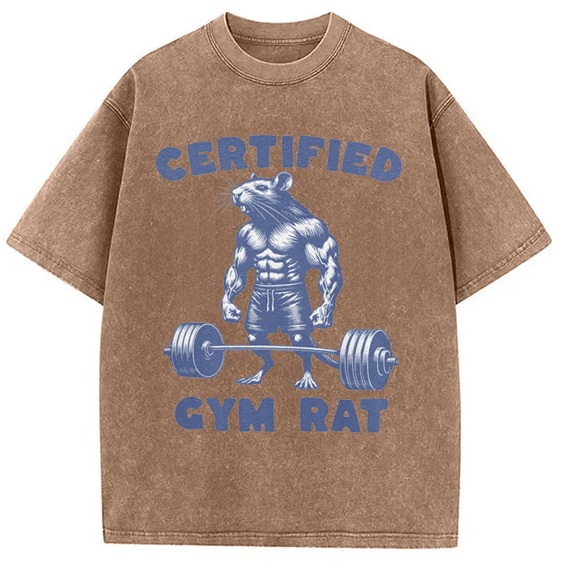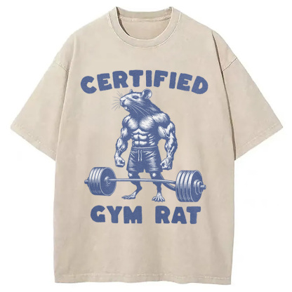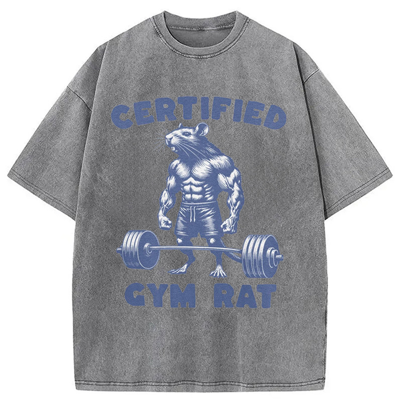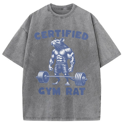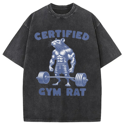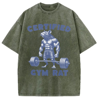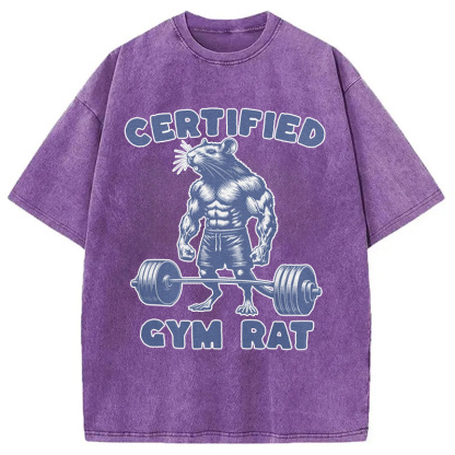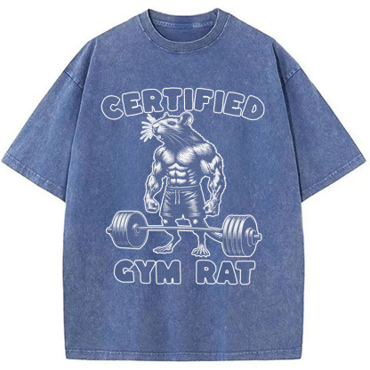 Certified Gym Rat Funny Washed T-Shirt