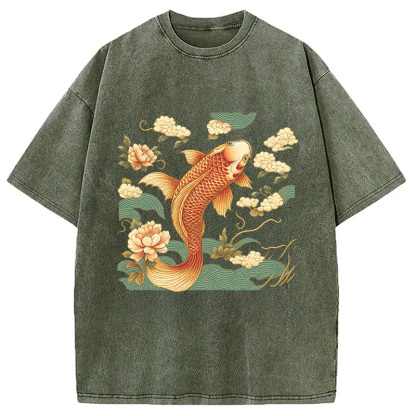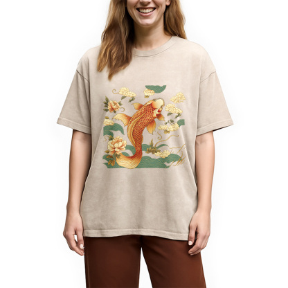 Cozy Vintage Japanese Koi Fish Washed T-Shirt