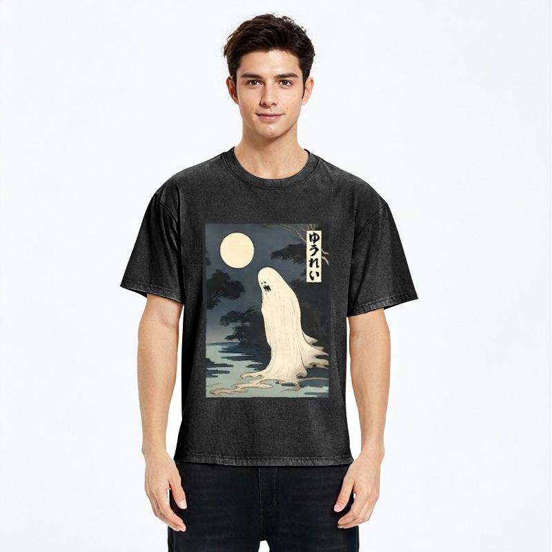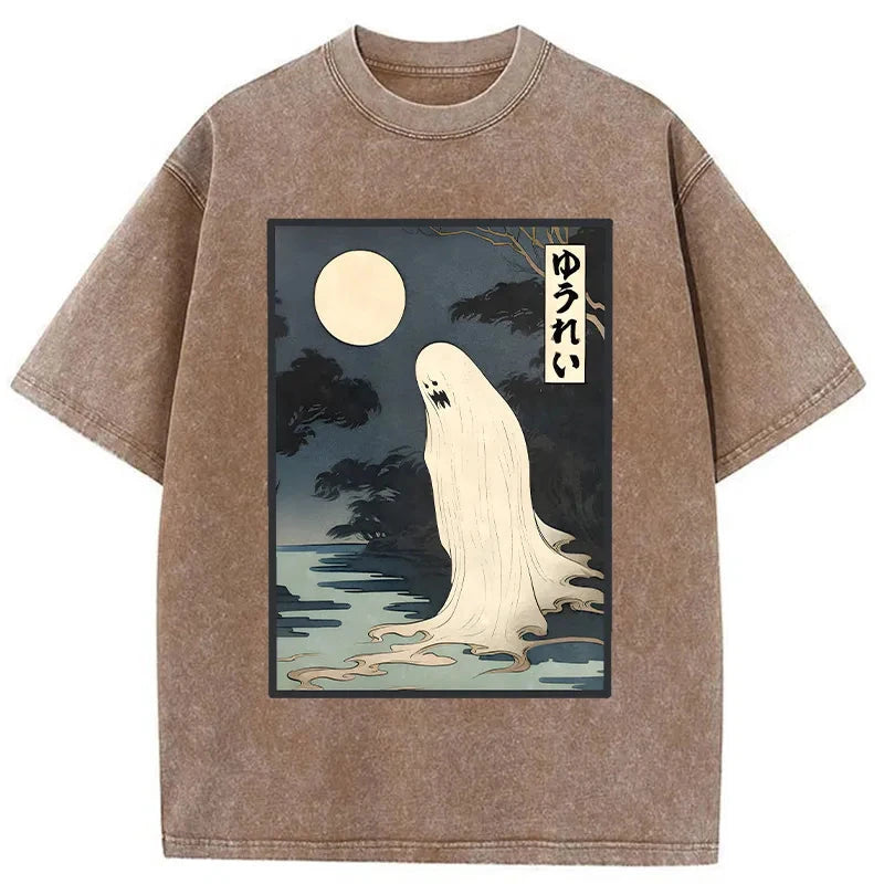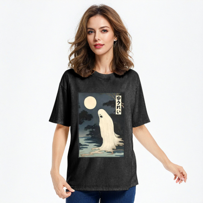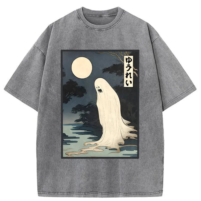 Creepy Japanese Ghost Washed T-Shirt For Sale