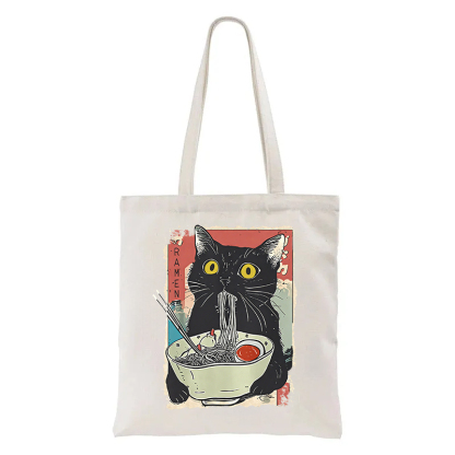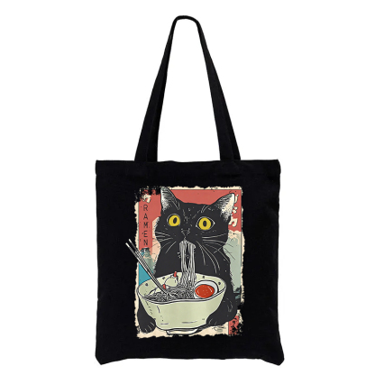 Cute Cat Eating Ramen Tote Bag