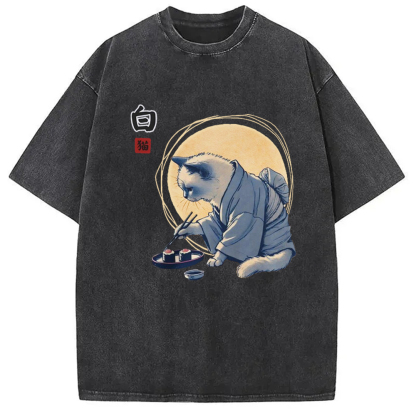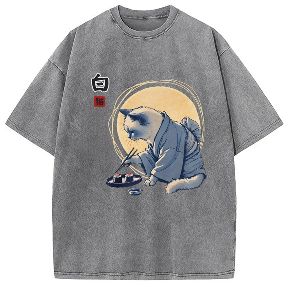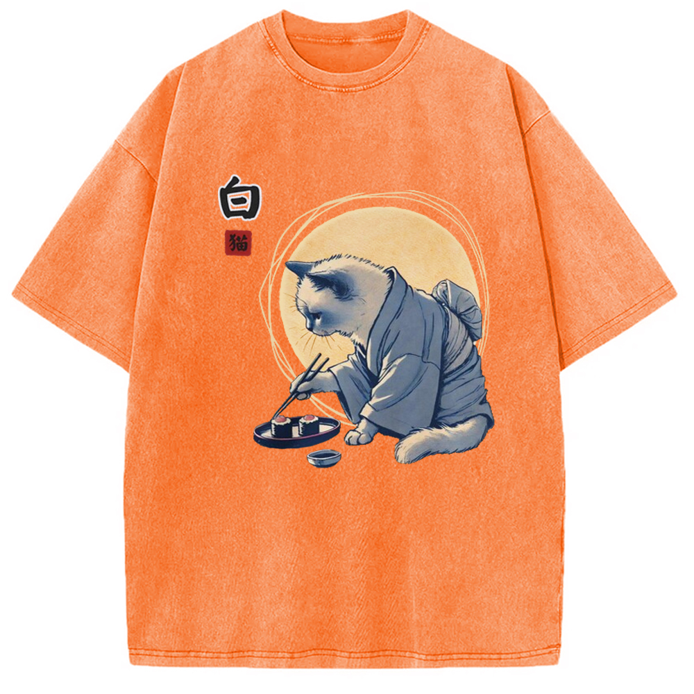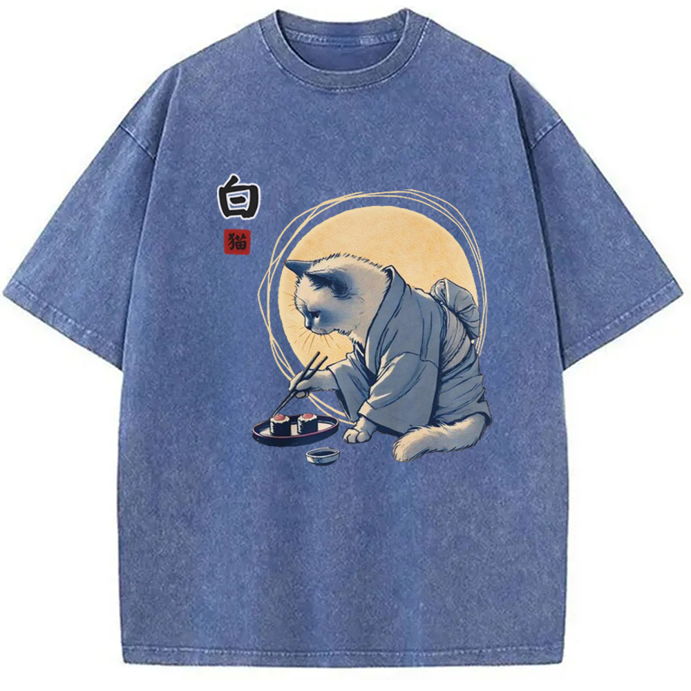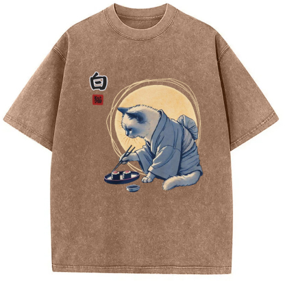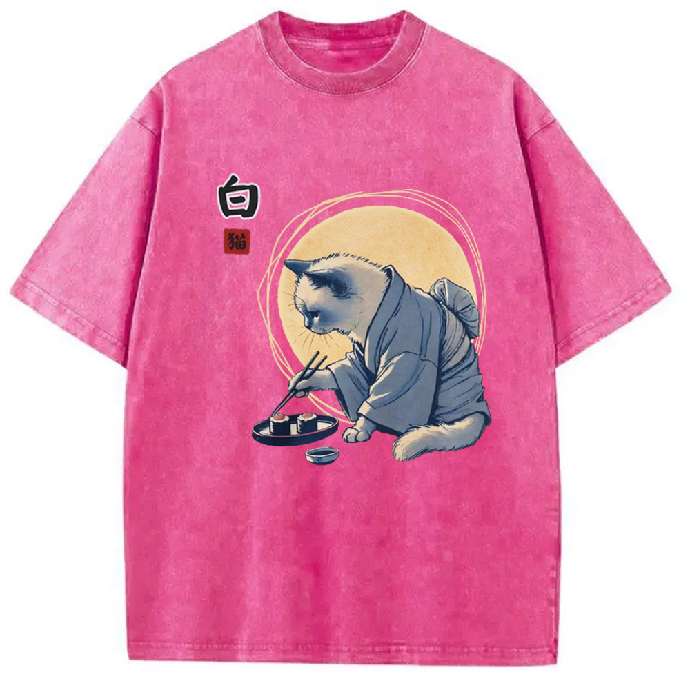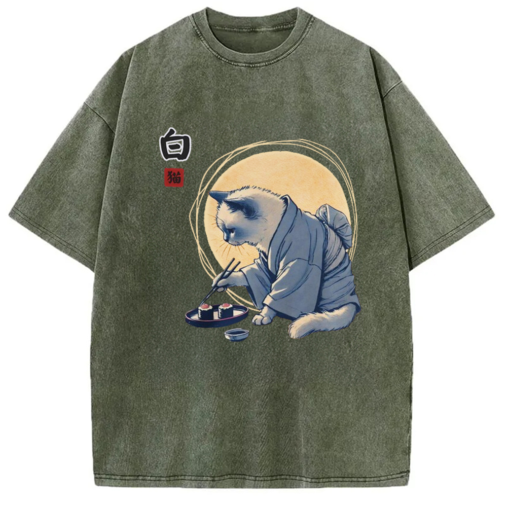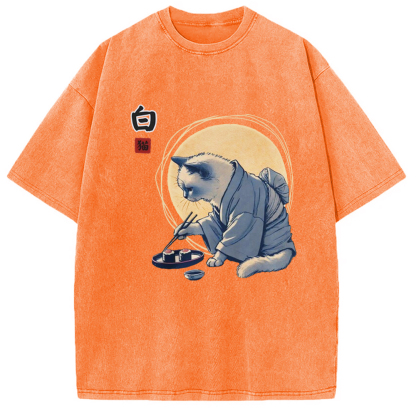 Cute Japanese Sushi Cat Washed T-Shirt