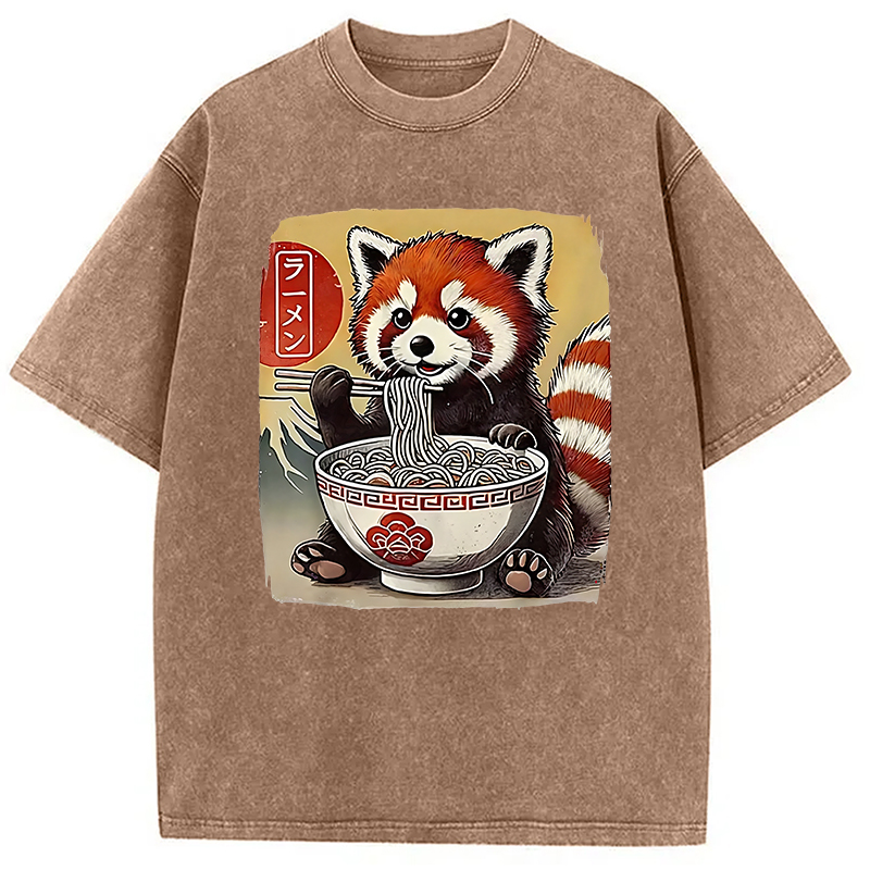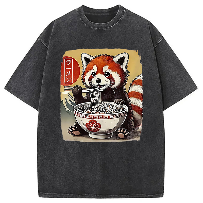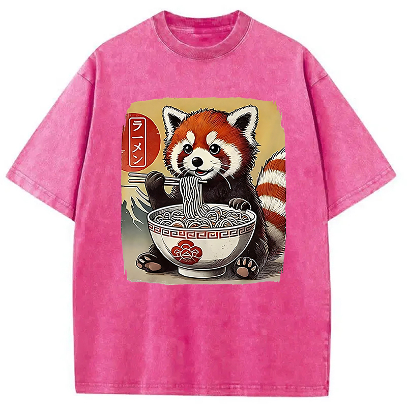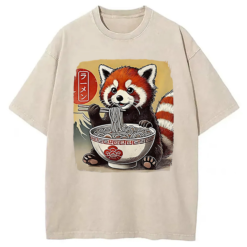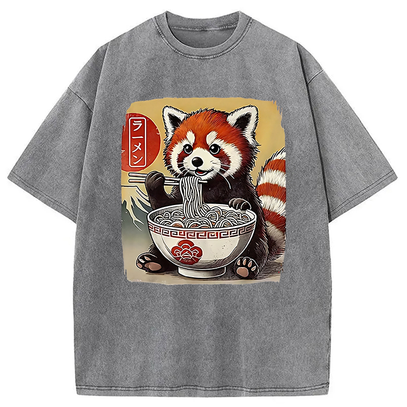 Cute Raccoon Eating Ramen Washed T-Shirt
