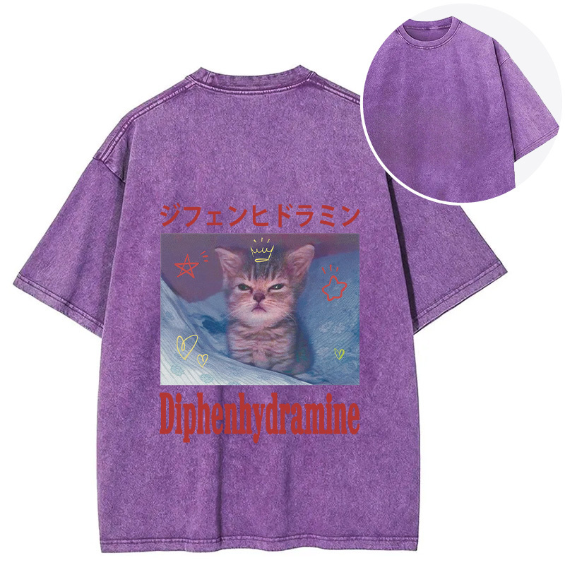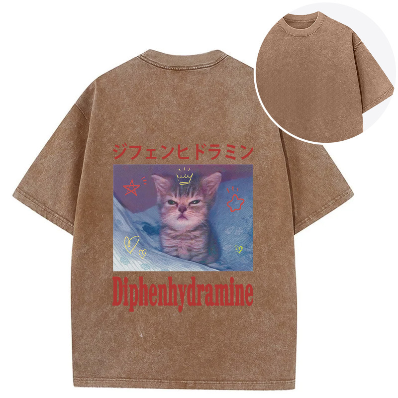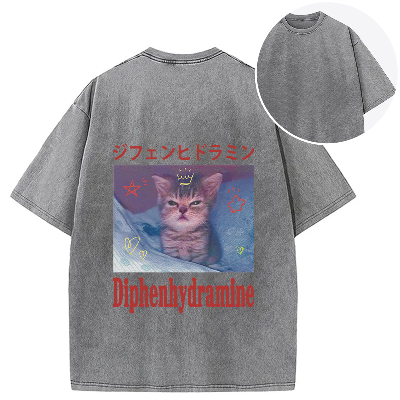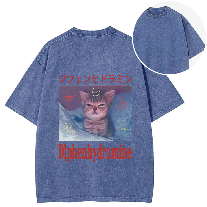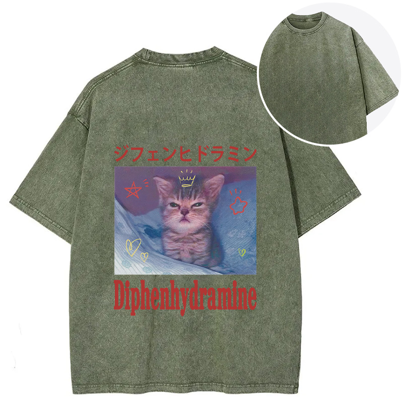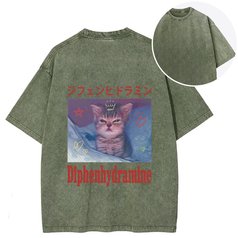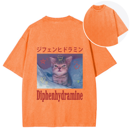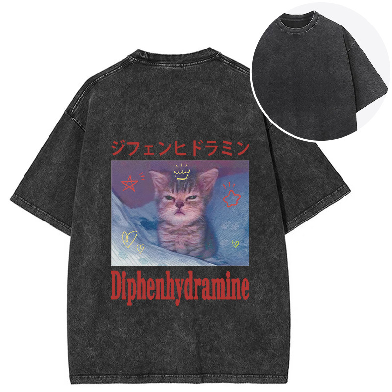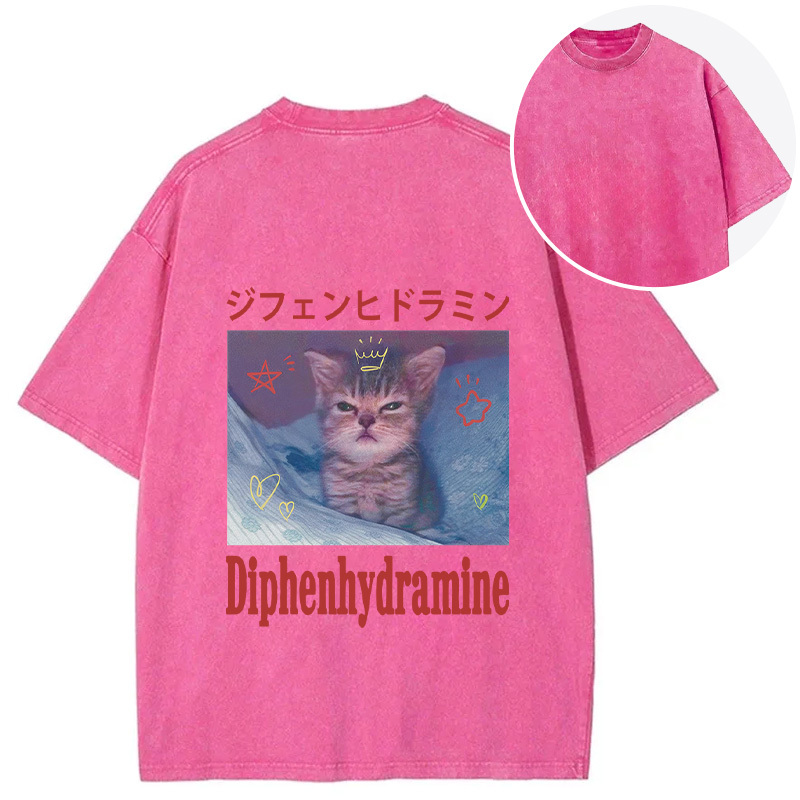 Diphenhydramine Cat Funny Meme Back Washed T-Shirt