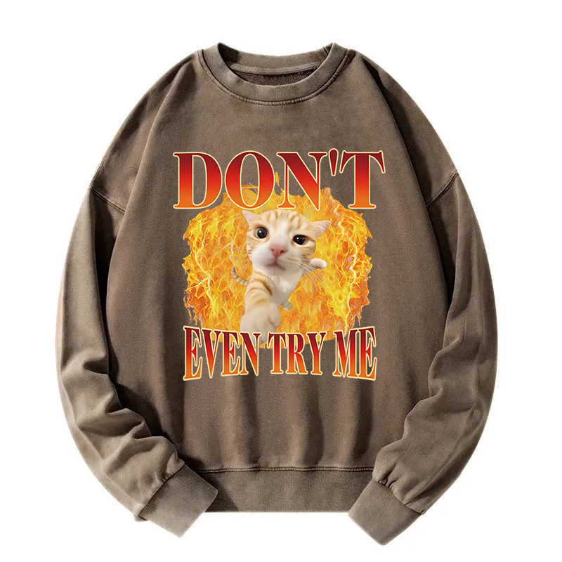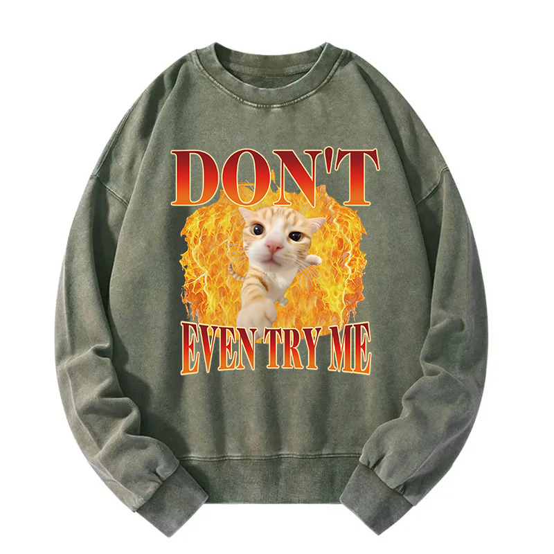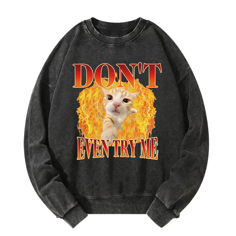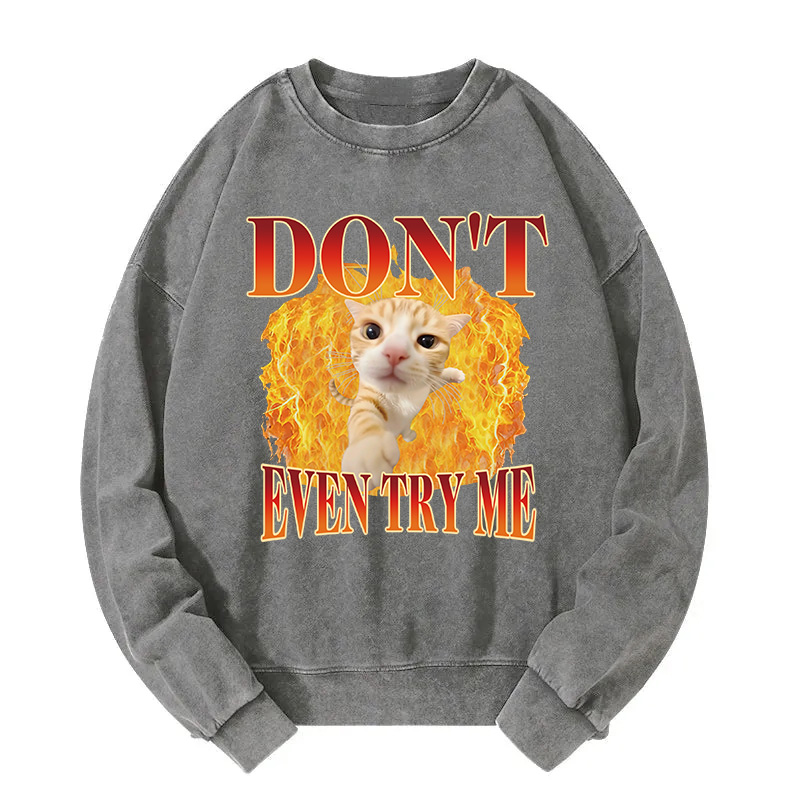 Don't Even Try Me Cat Meme Washed Sweatshirt