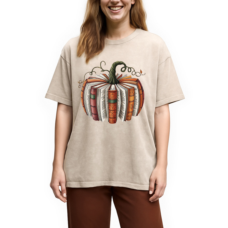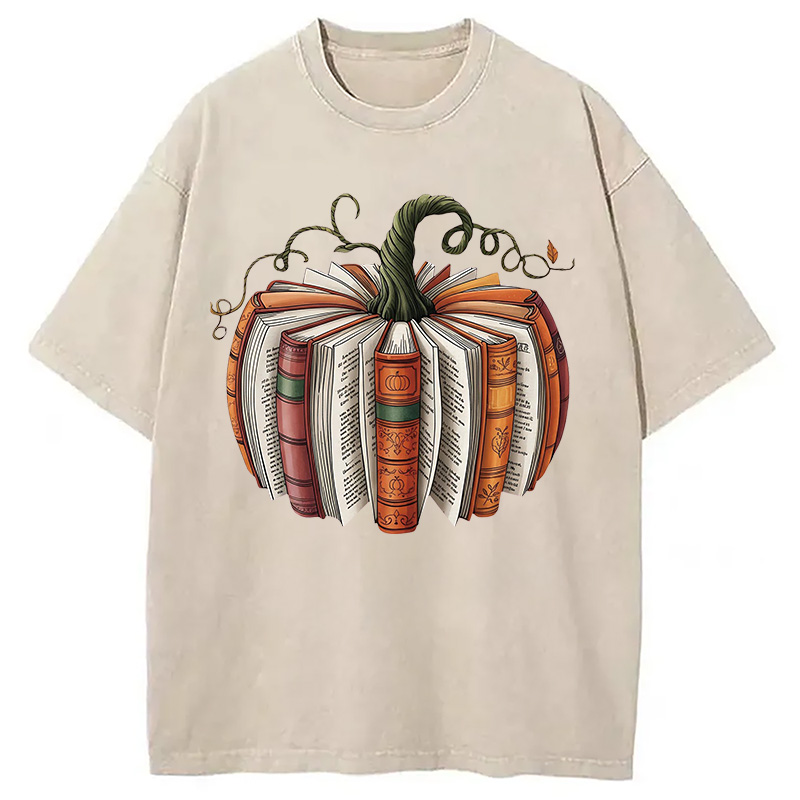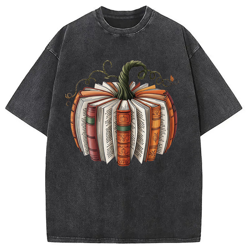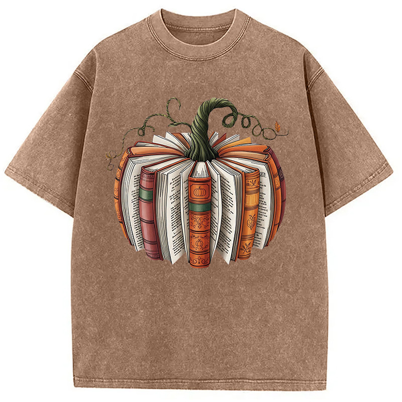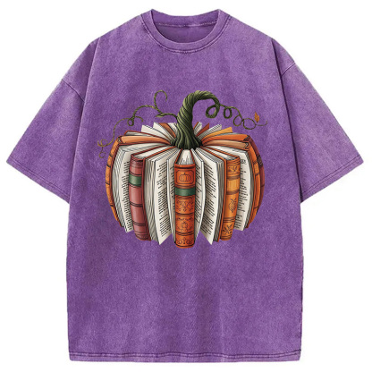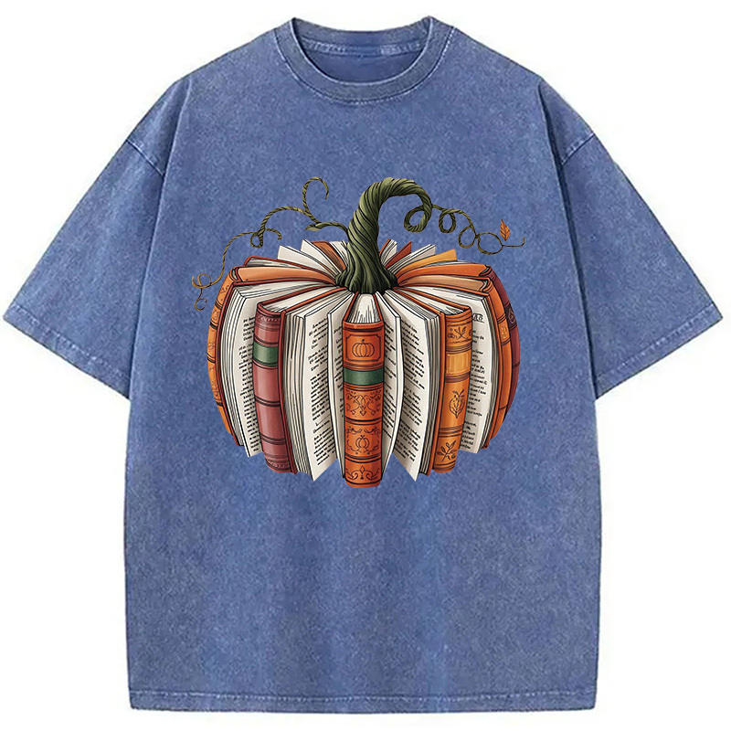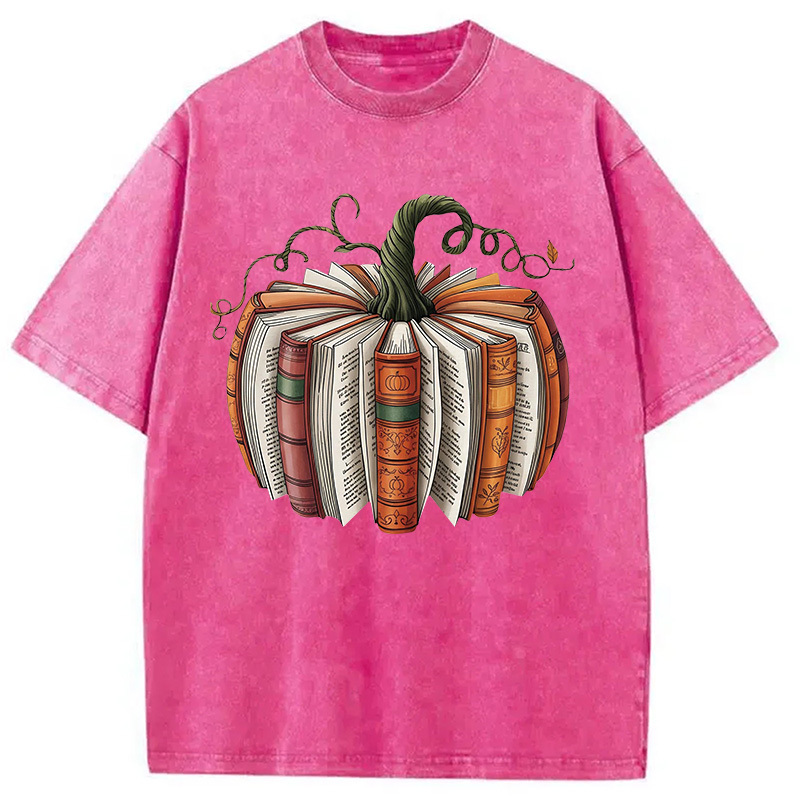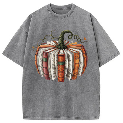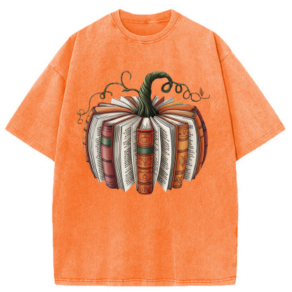 Fall Book Pumpkin Halloween Washed T-Shirt