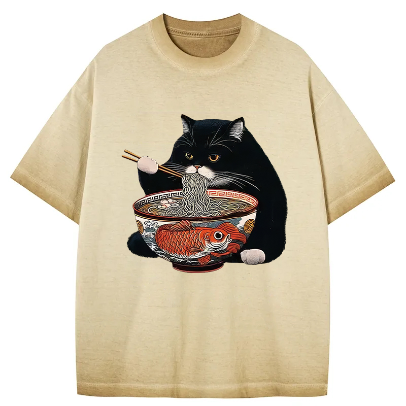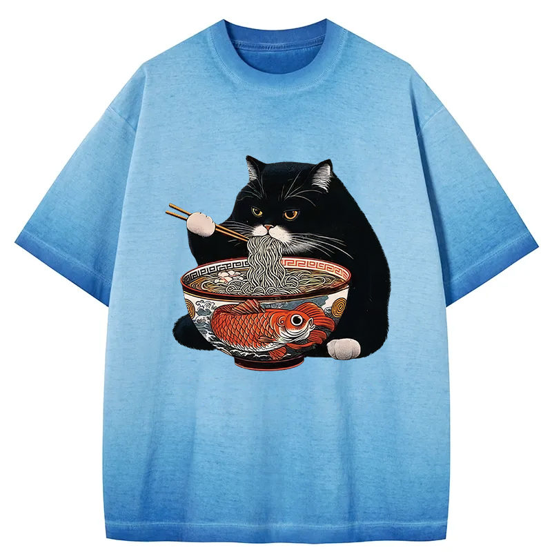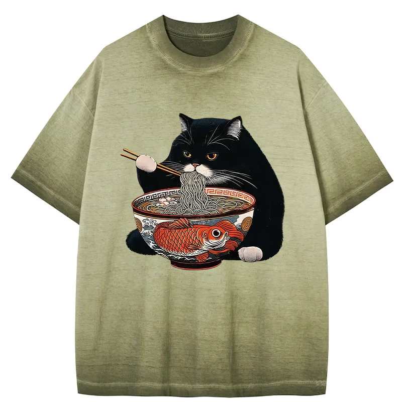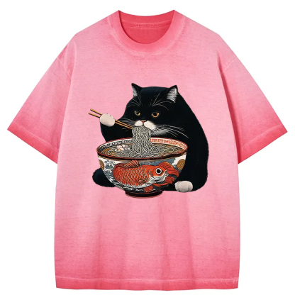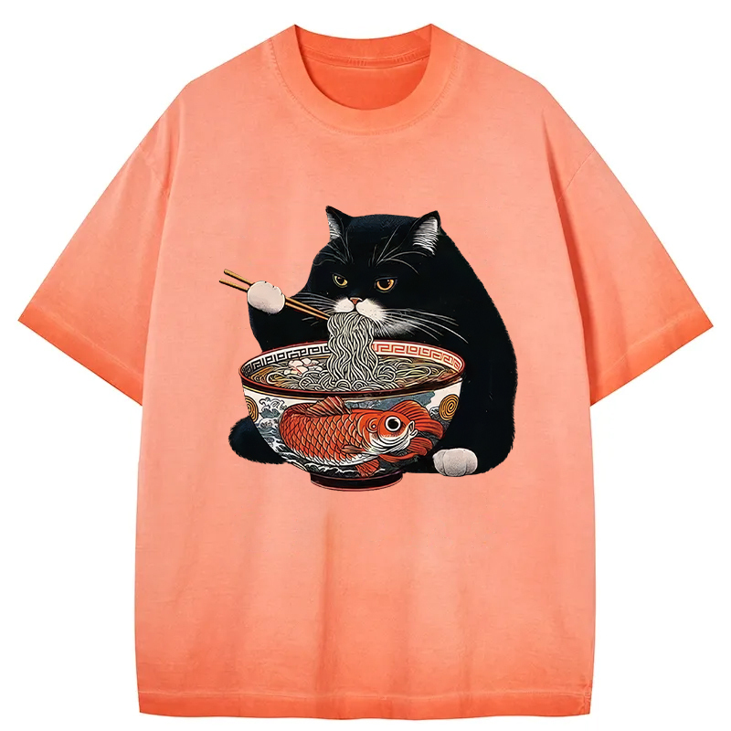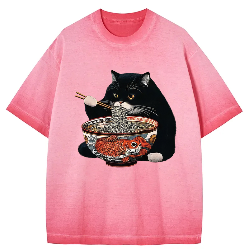 Fat Cat Eating Ramen Gradient Washed T-Shirt
