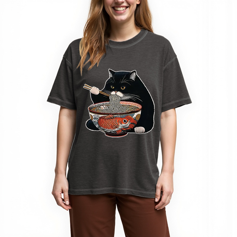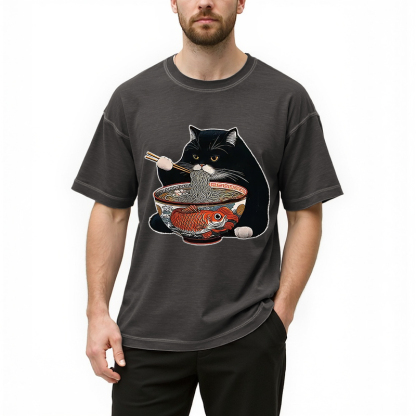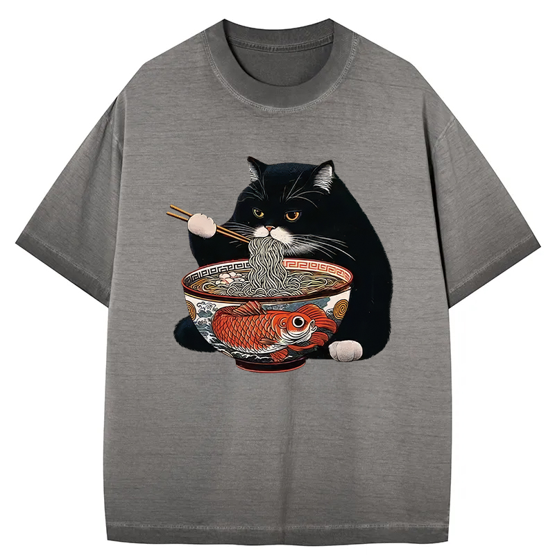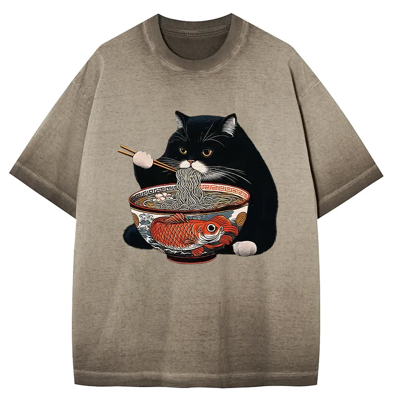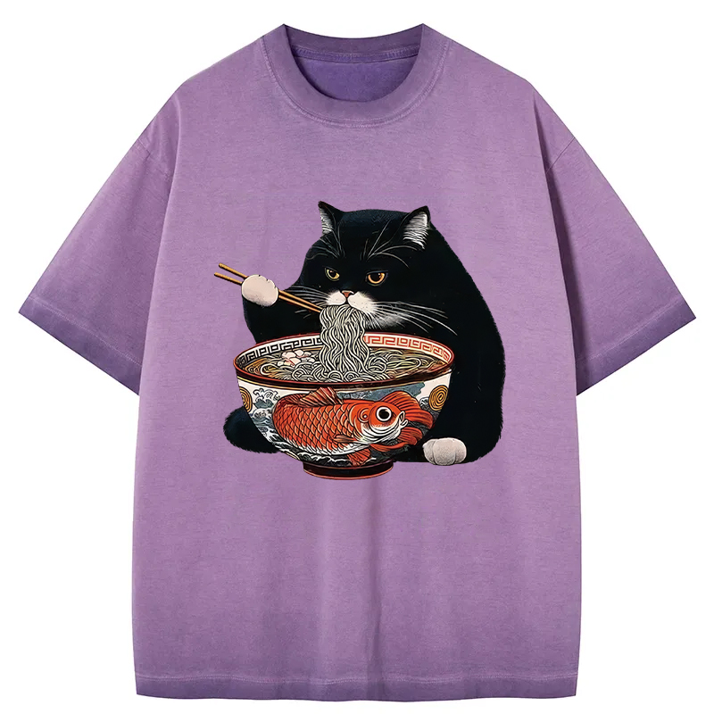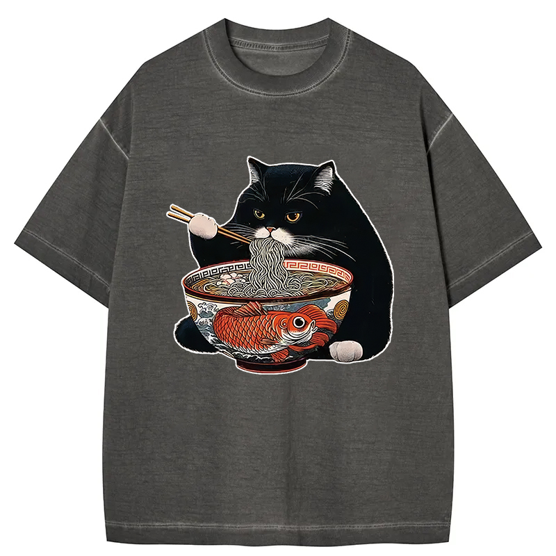 Fat Cat Eating Ramen Gradient Washed T-Shirt