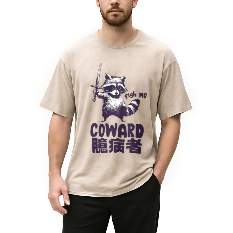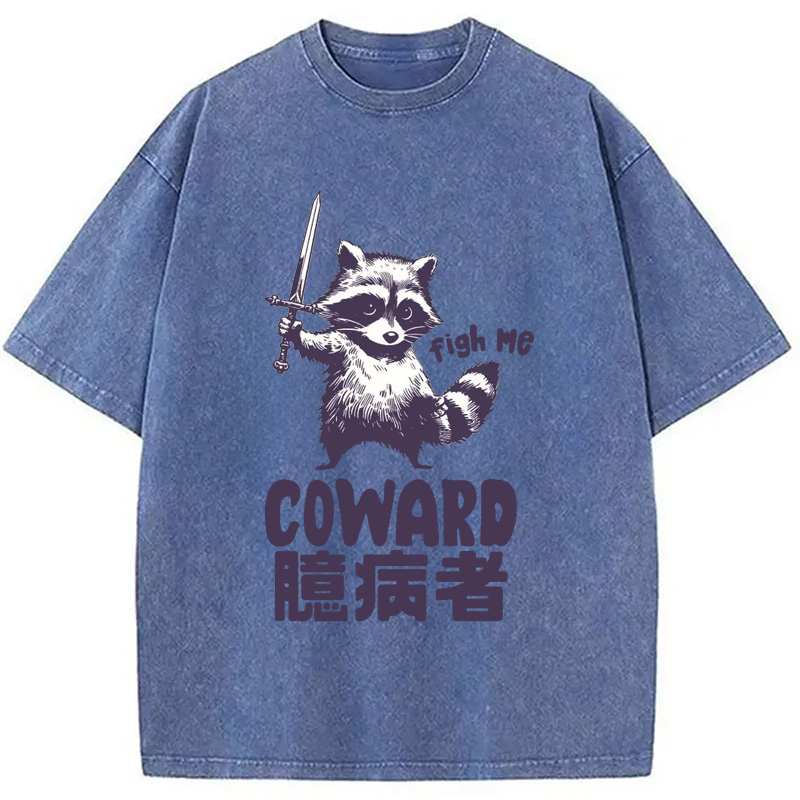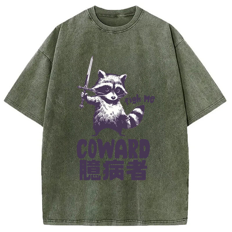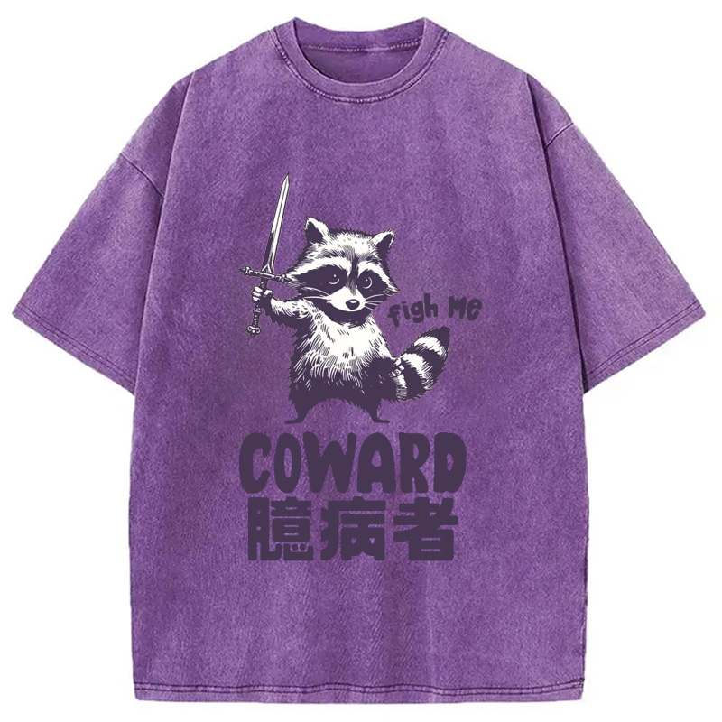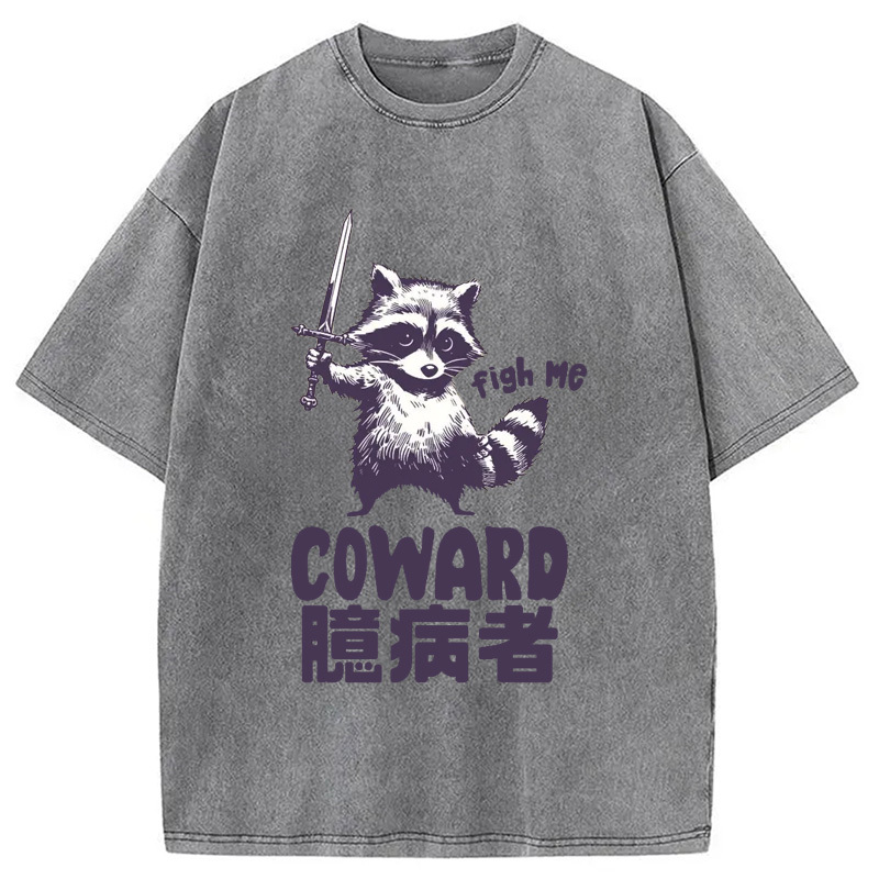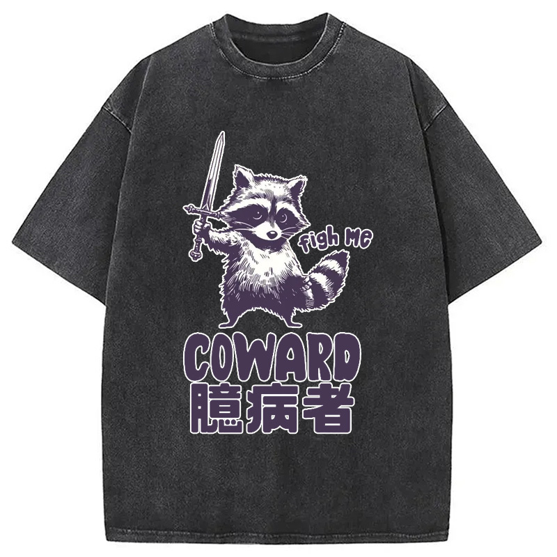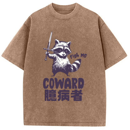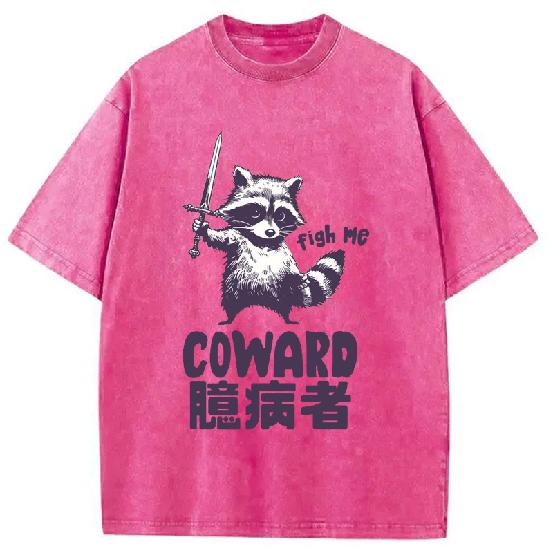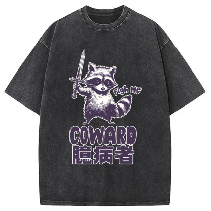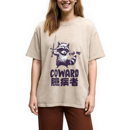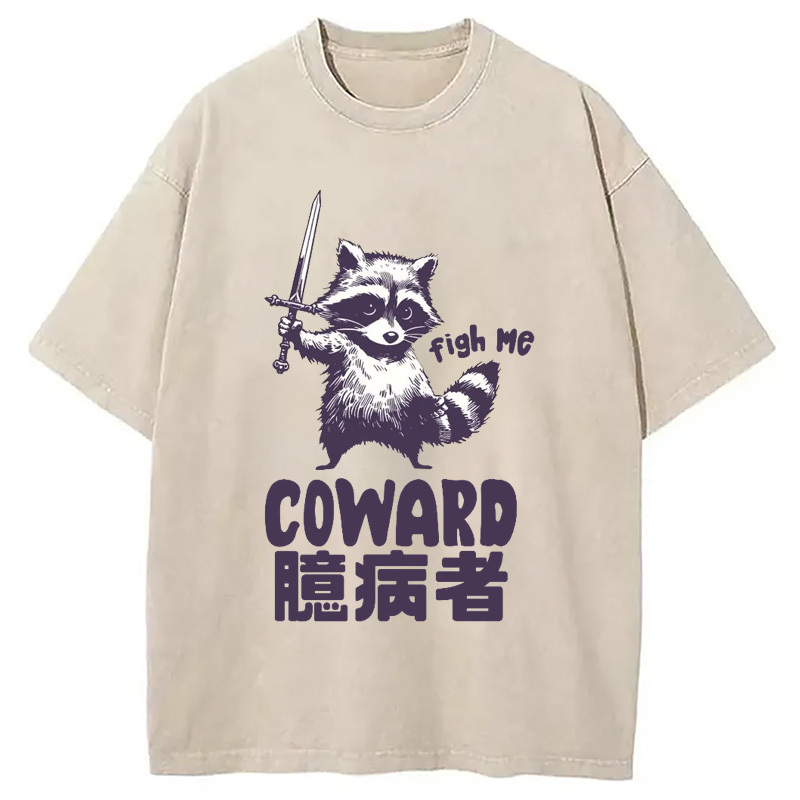 Figh me Coward Raccoon Washed T-Shirt