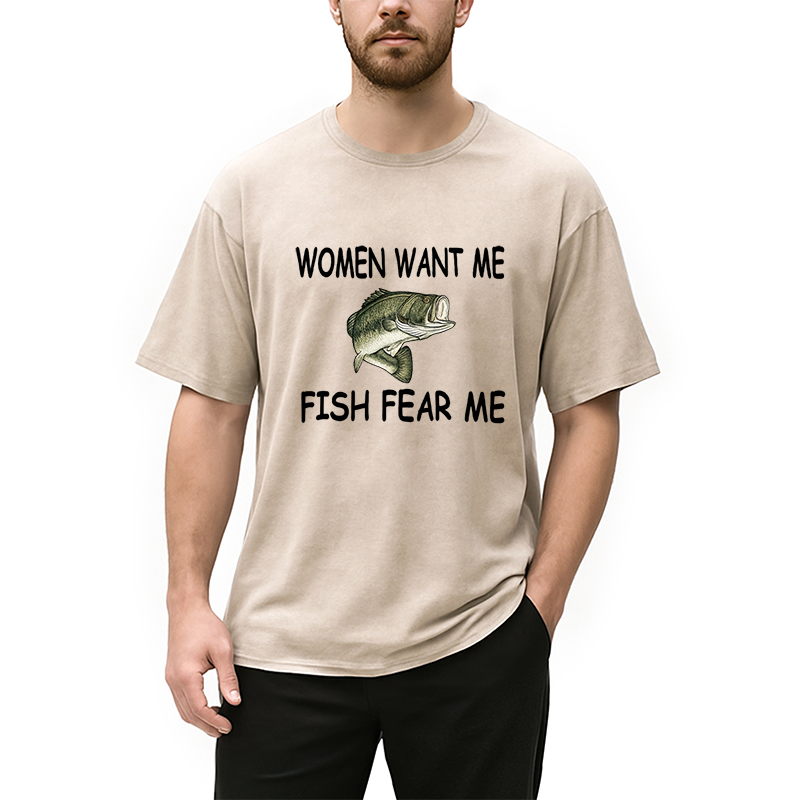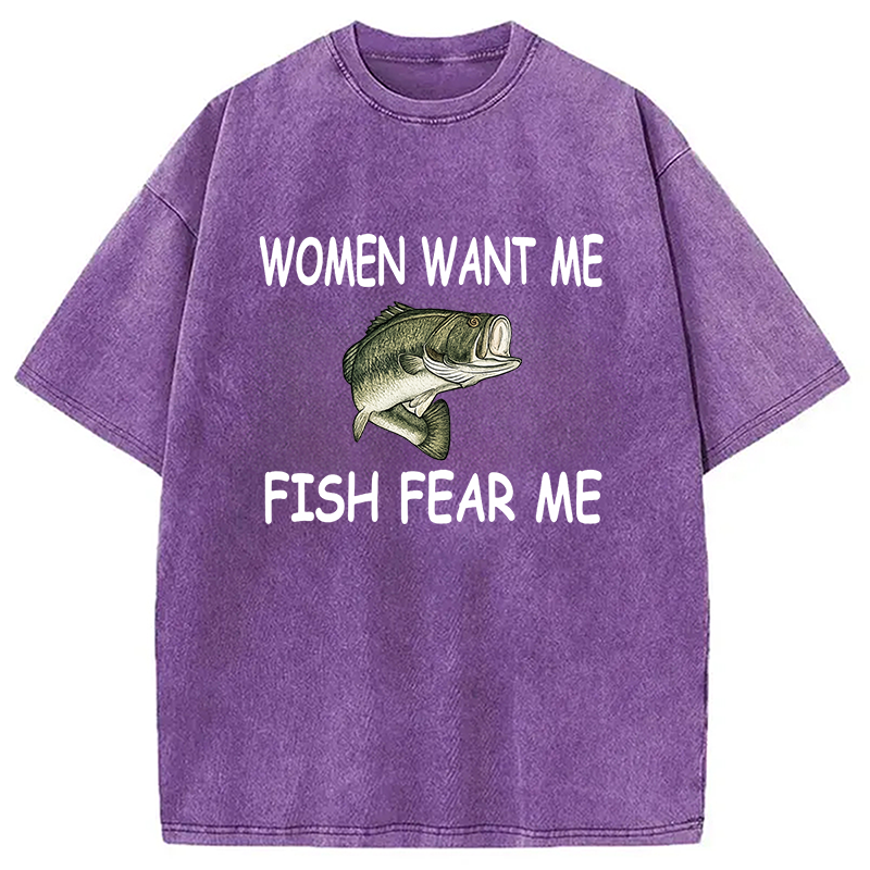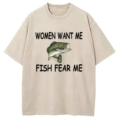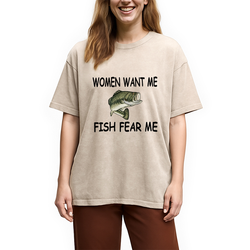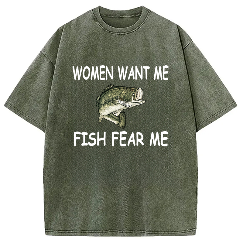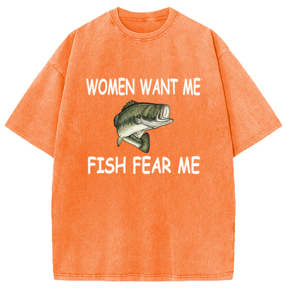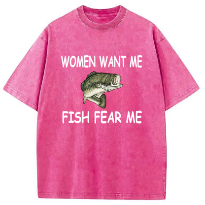 Fishing Women Want Me Fish Fear Me Washed T-Shirt