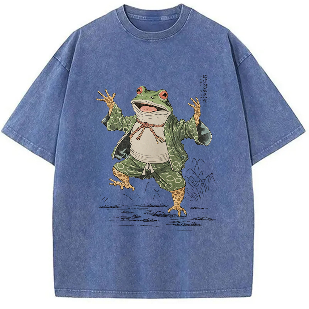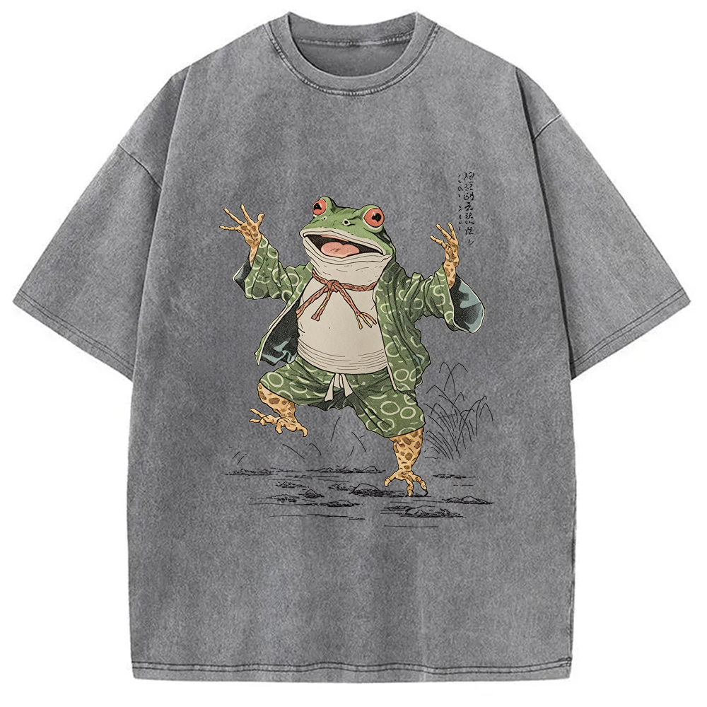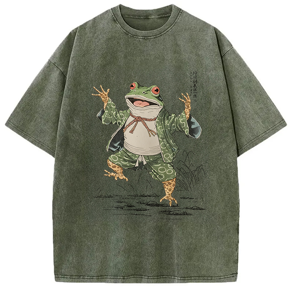 Frog Dancing Japanese Art Vintage Washed T-Shirt